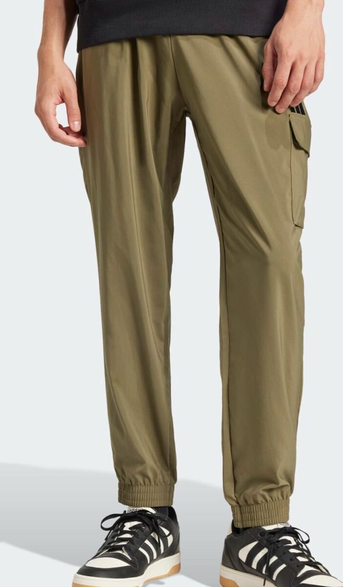 ●どんなスタイルにも似合う、モダンなデザインのアディダス カーゴパンツ。愛用のスニーカーTシャツと特に相性がいい、ウーブンファブリックを使用した快適なはき心地の普段使いにふさわしい一本。ちょっと貴重品を入れてもかさばらない、ボリューム感を抑えたカーゴポケット付き。