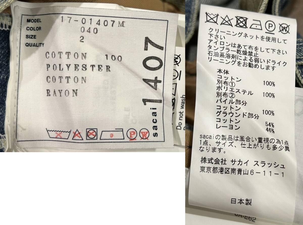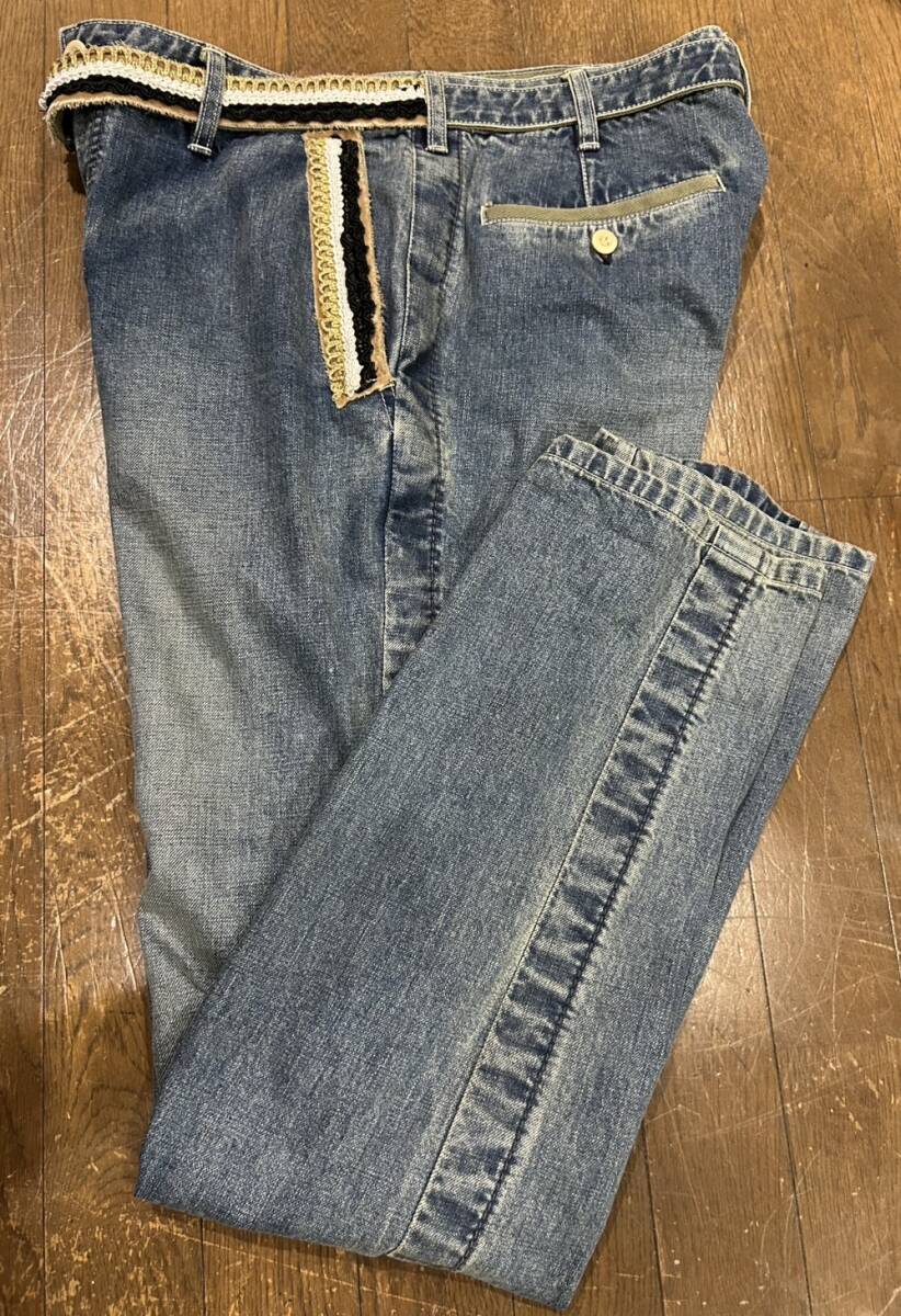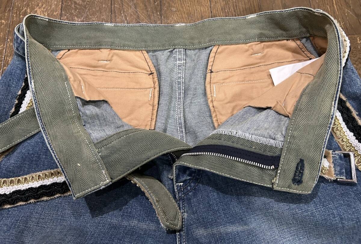 *サカイ sacai ベルテッド 刺繍 デニムパンツ 2      BJBE. AJ