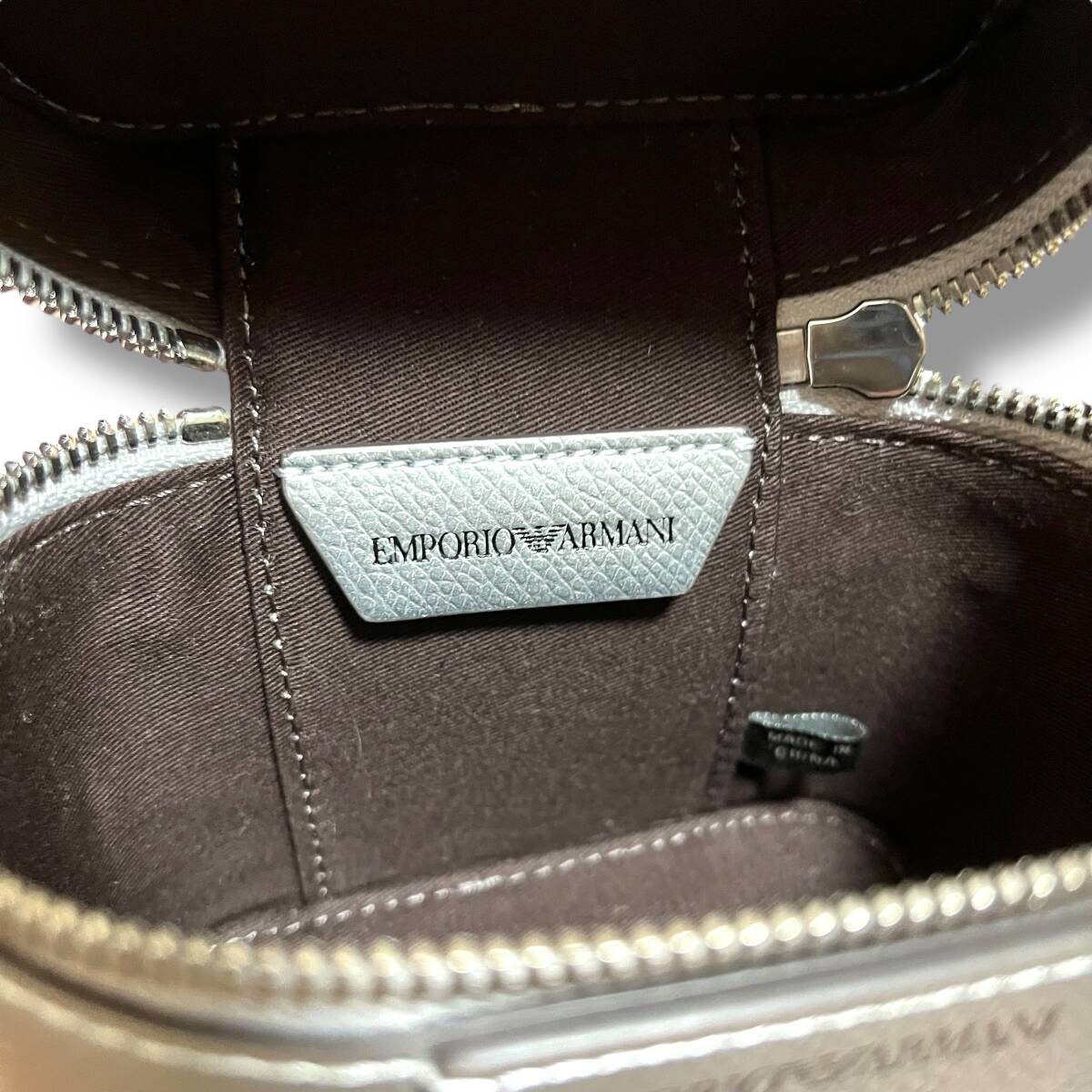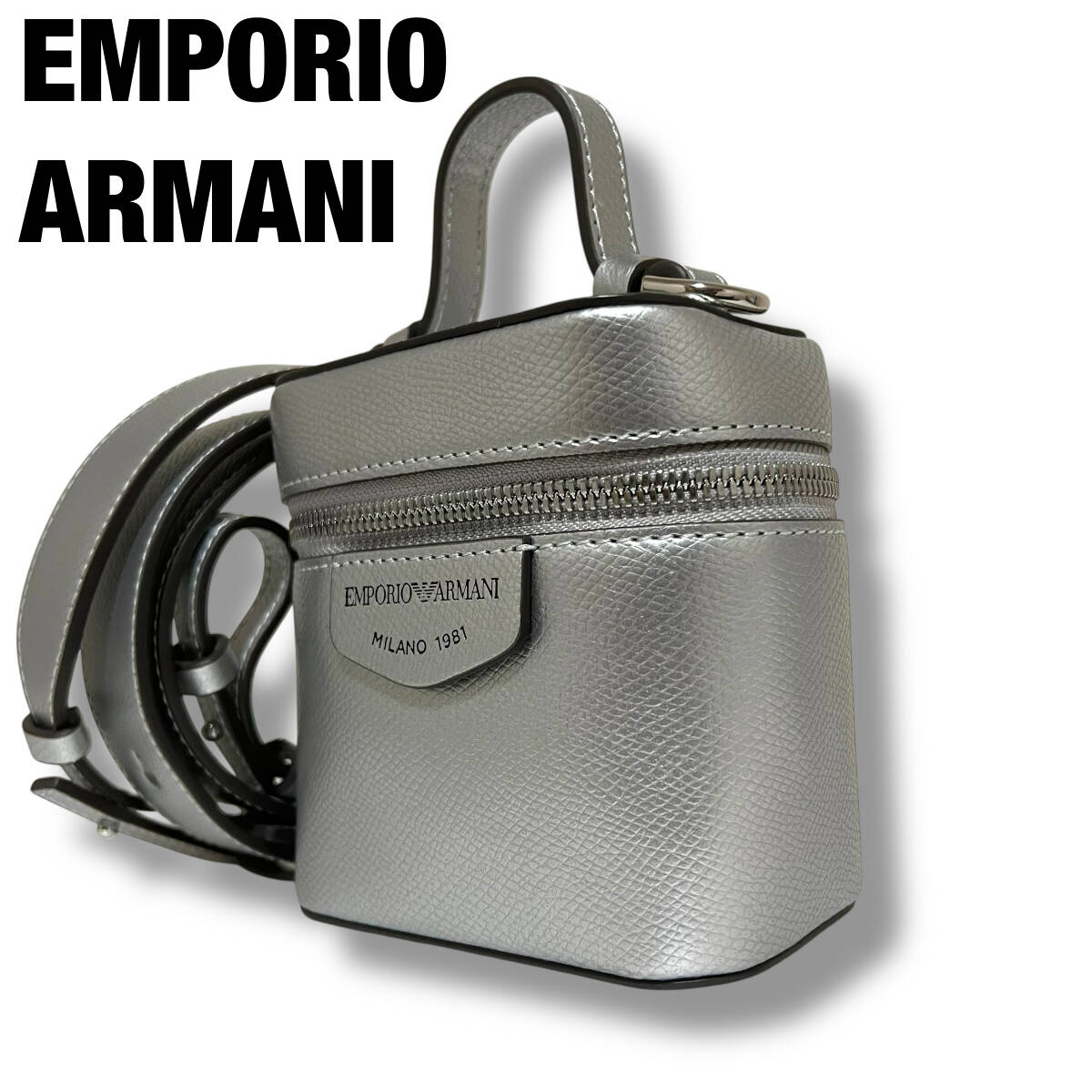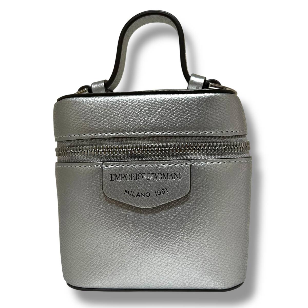 極美品 EMPORIO ARMANI エンポリオアルマーニ バニティバッグ ハンドバッグ ショルダーバッグ 2WAY レザー 銀 シルバー メンズ レディース