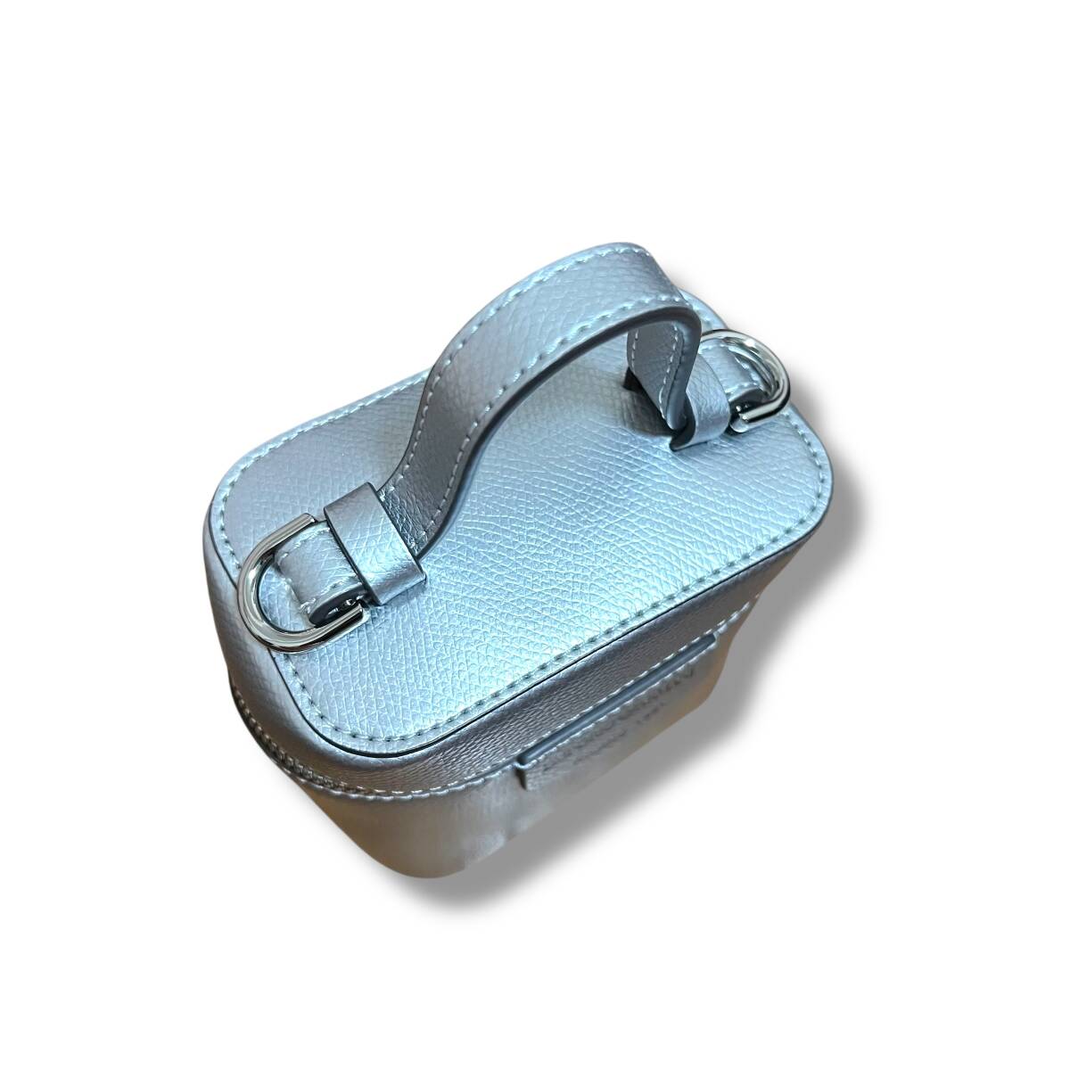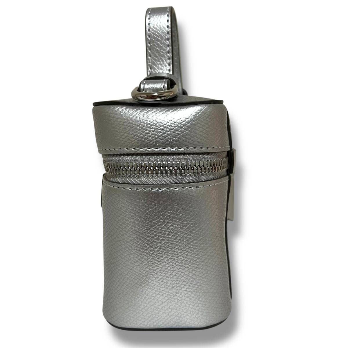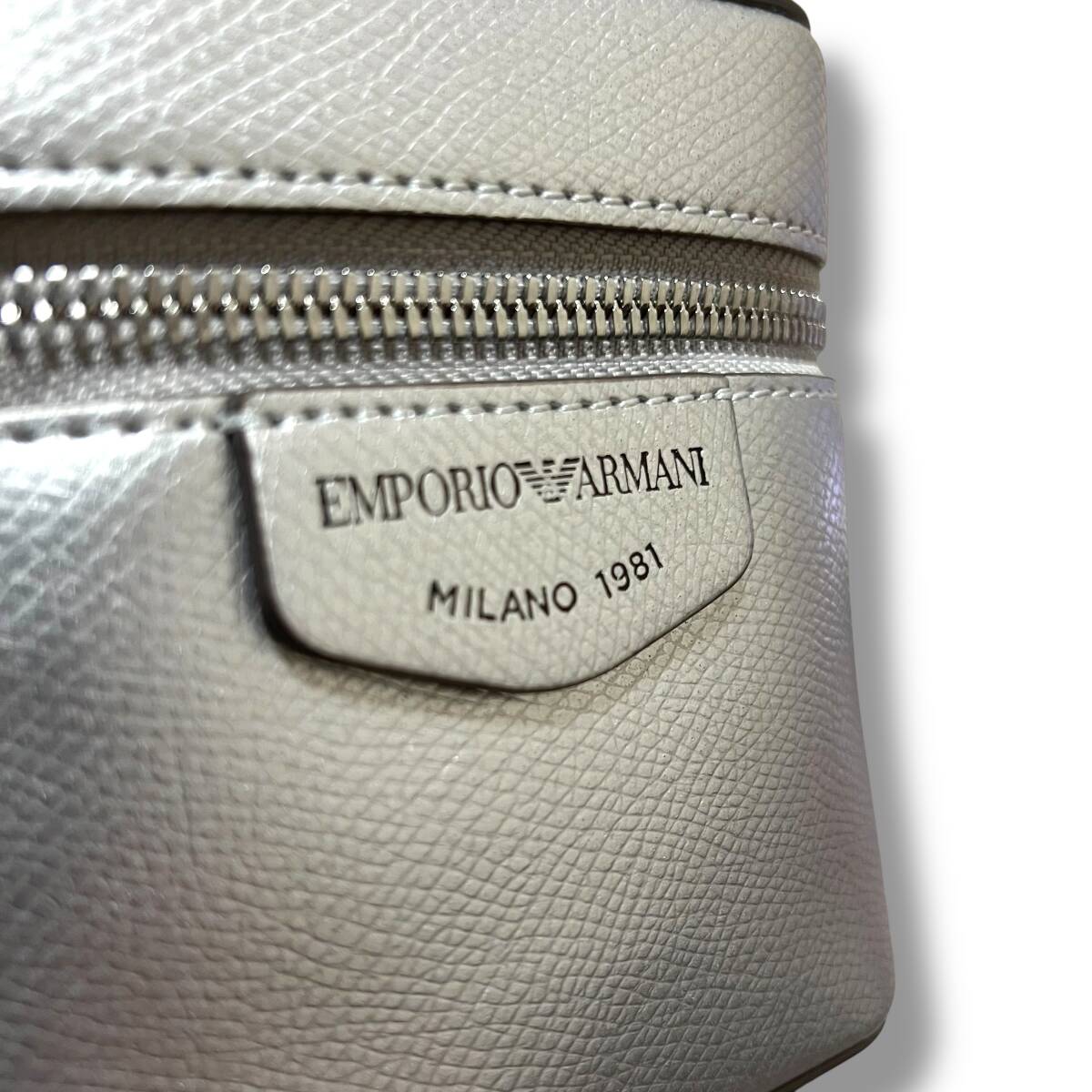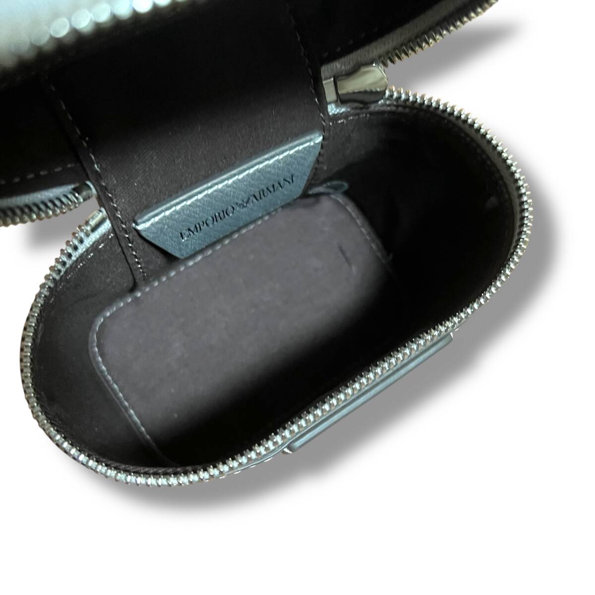 極美品 EMPORIO ARMANI エンポリオアルマーニ バニティバッグ ハンドバッグ ショルダーバッグ 2WAY レザー 銀 シルバー メンズ レディース