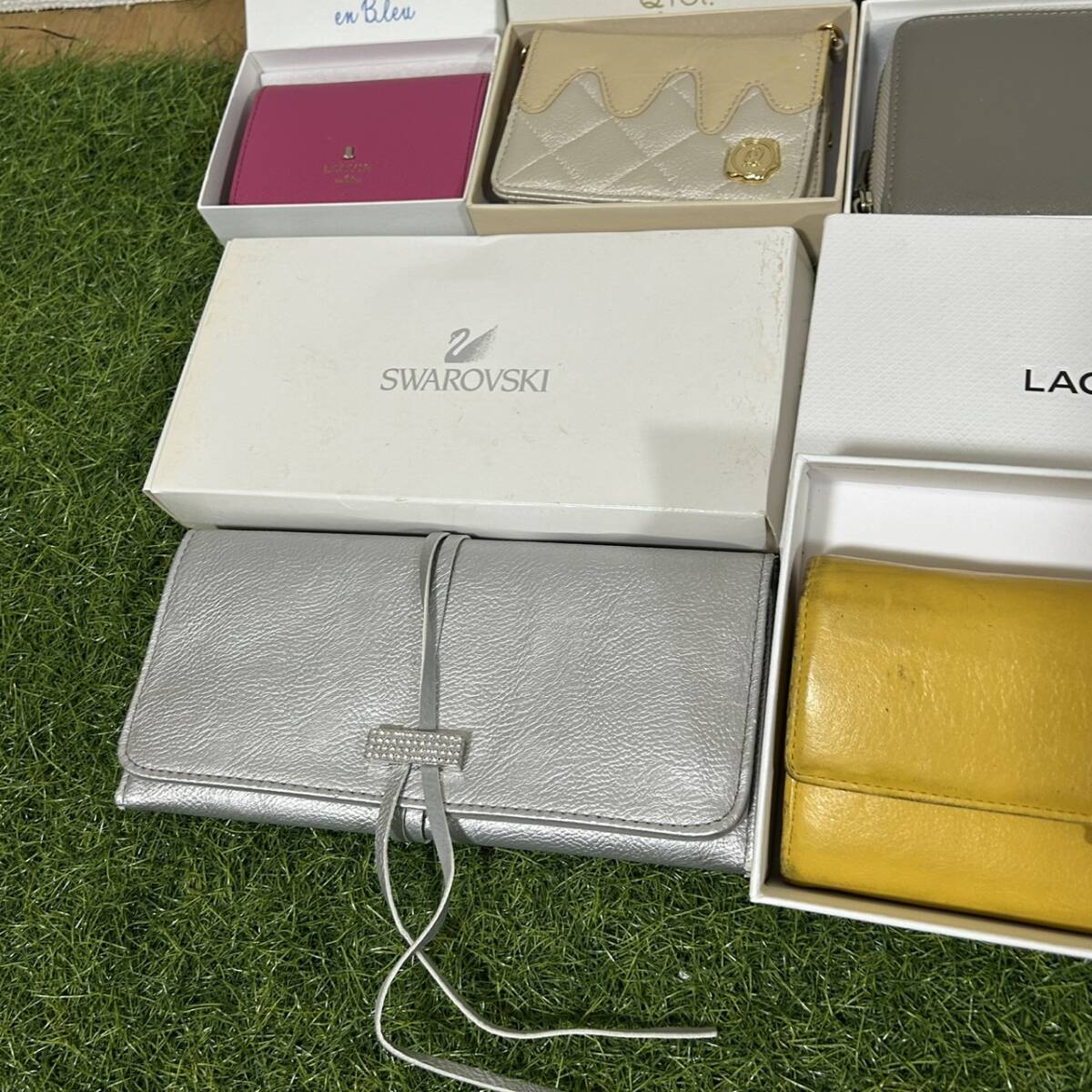 ブランド 財布 7点まとめ LANVIN SWAROVSKI LACOSTE BARDOT ROSE など 長財布 カードケース 二つ折り ミニウォレット 箱付き 美品含む