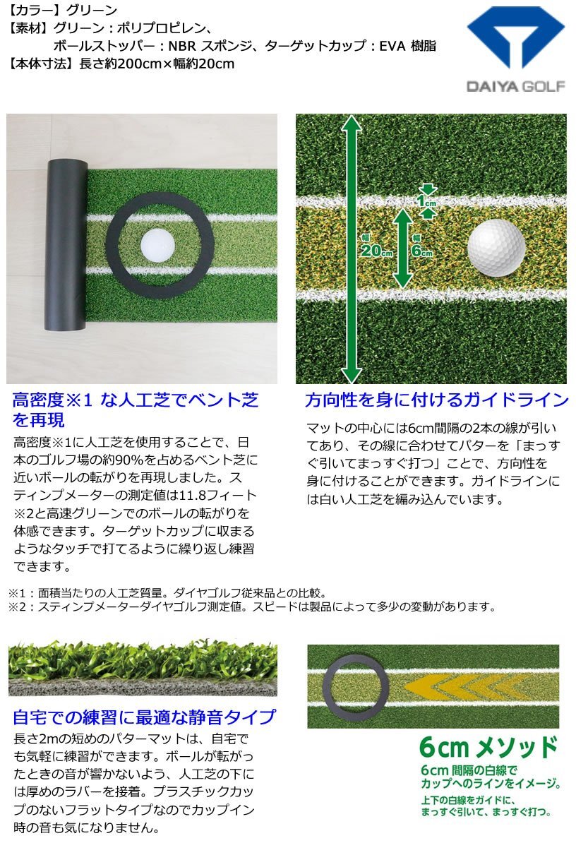約1.8倍高密度人工芝※1を使用することで11.8フィート※2の高速ベントグリーンのタッチを再現した、ショートパットを決めるための「タッチ」と「方向性」が習得できるパターマット。