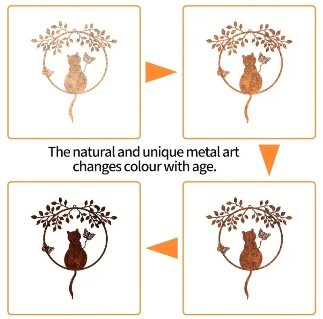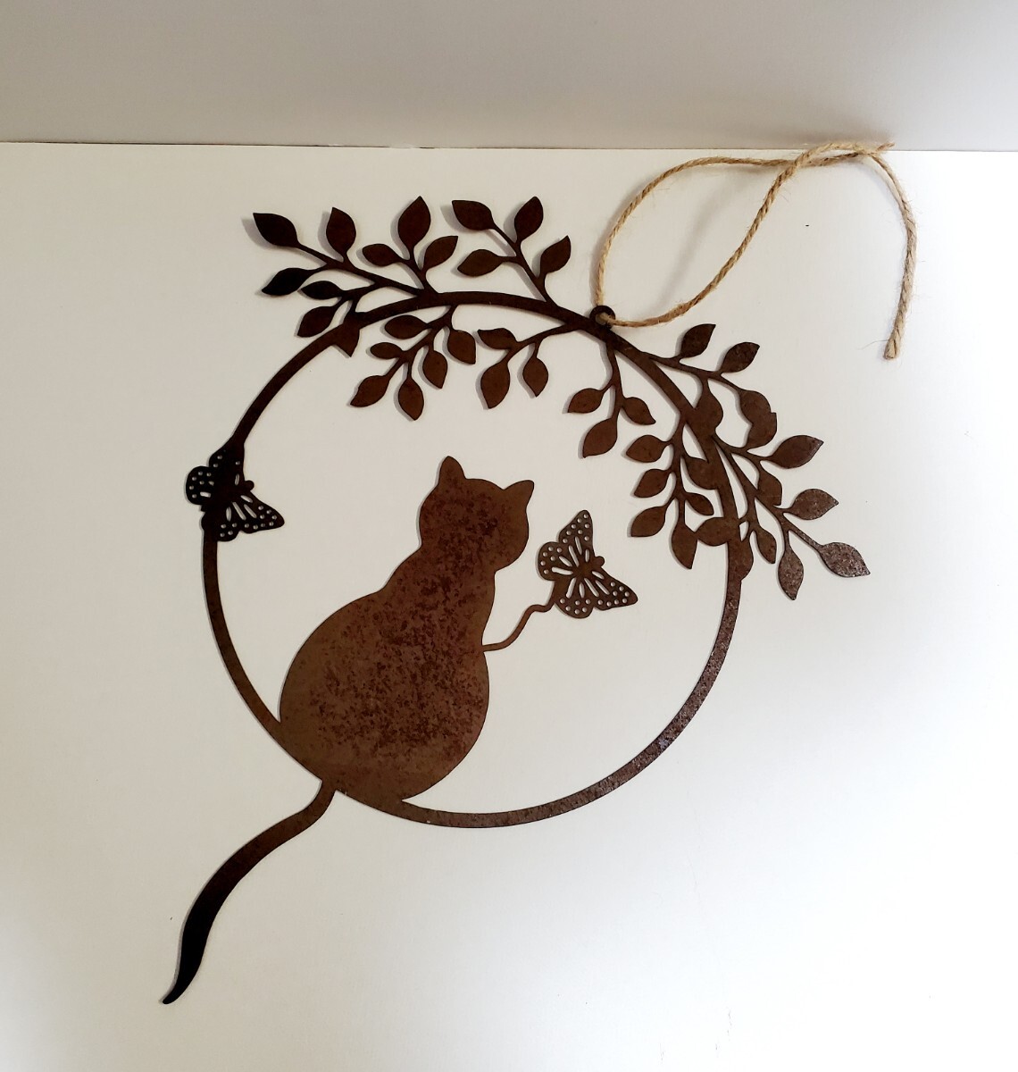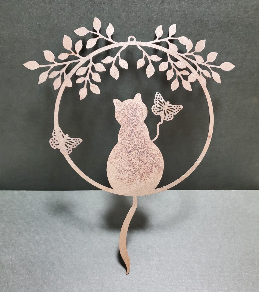 猫をモチイフした金属製のガーデンオブジェです。錆び加工しております。