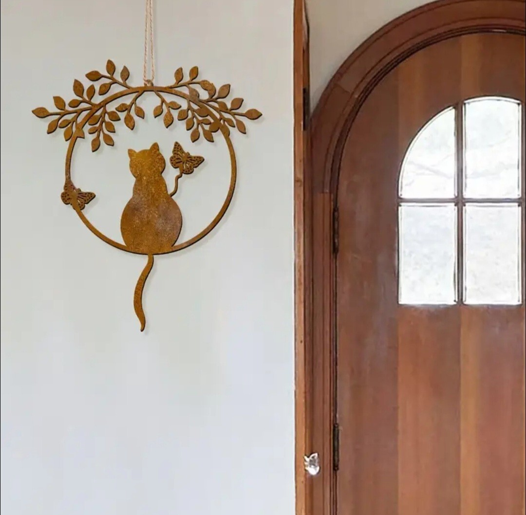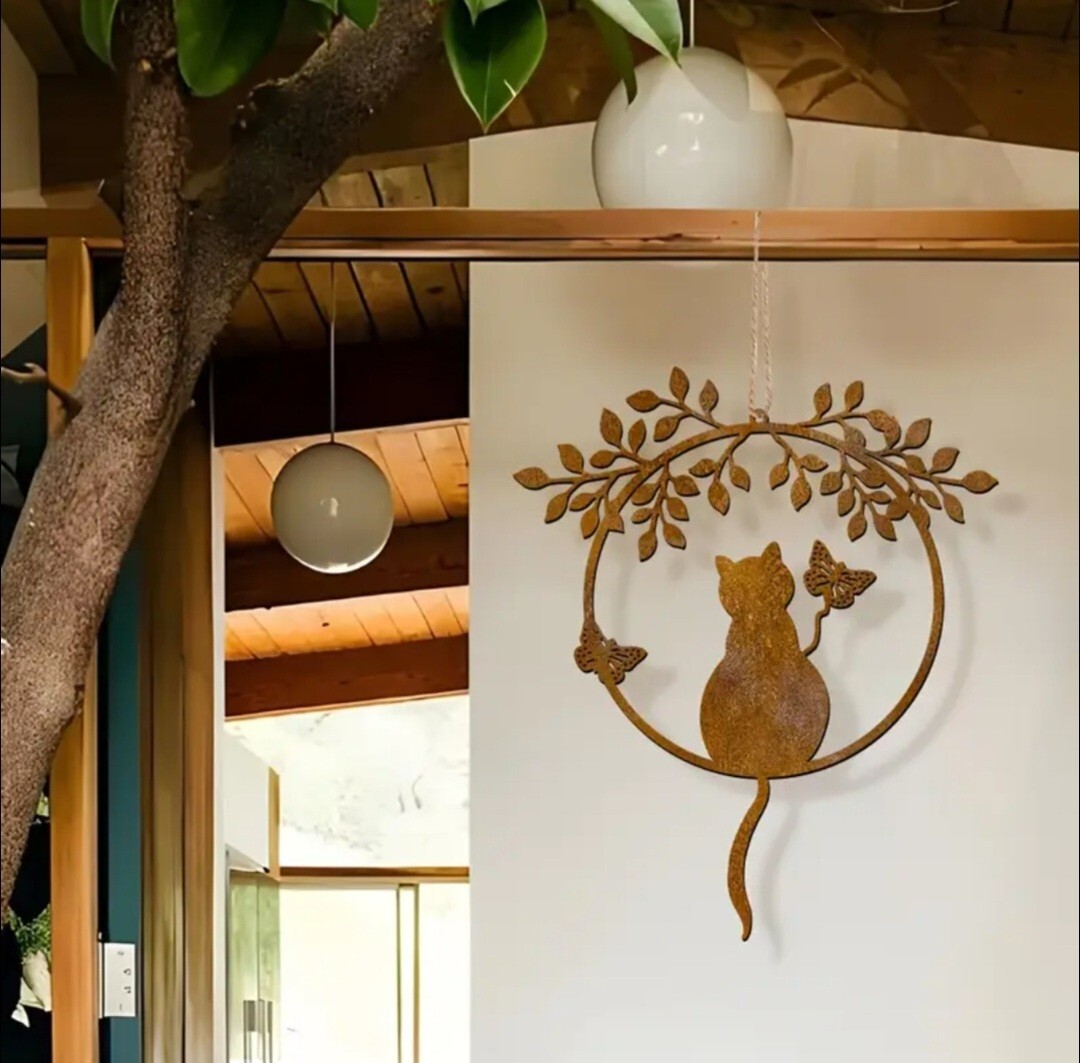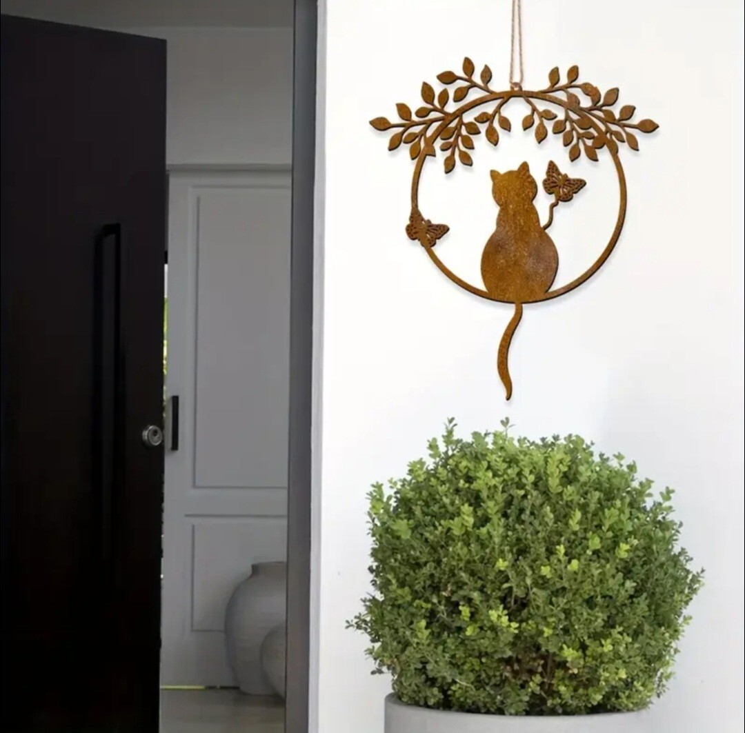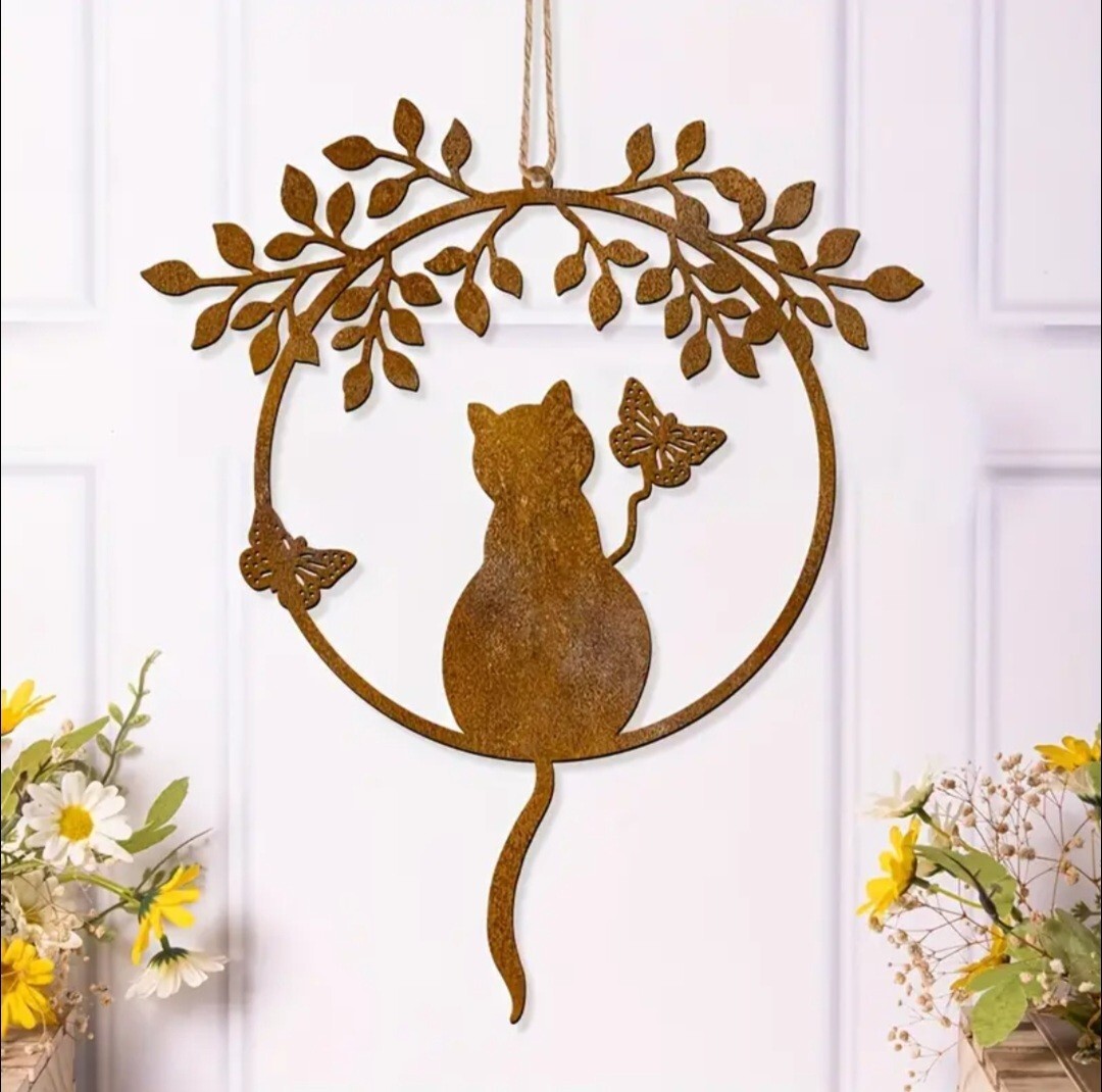 猫をモチイフした金属製のガーデンオブジェです。錆び加工しております。