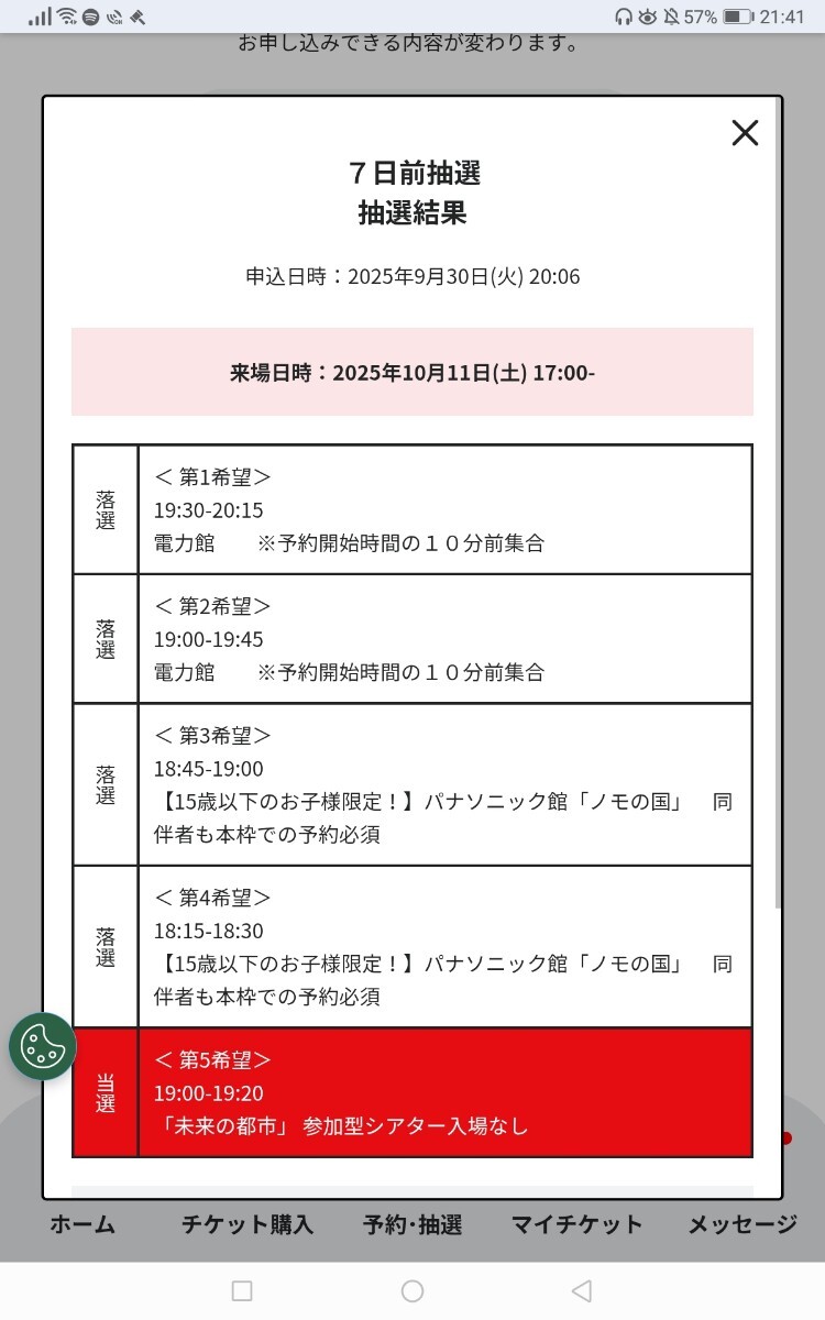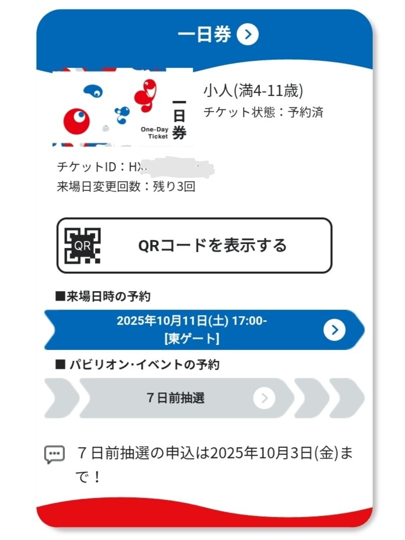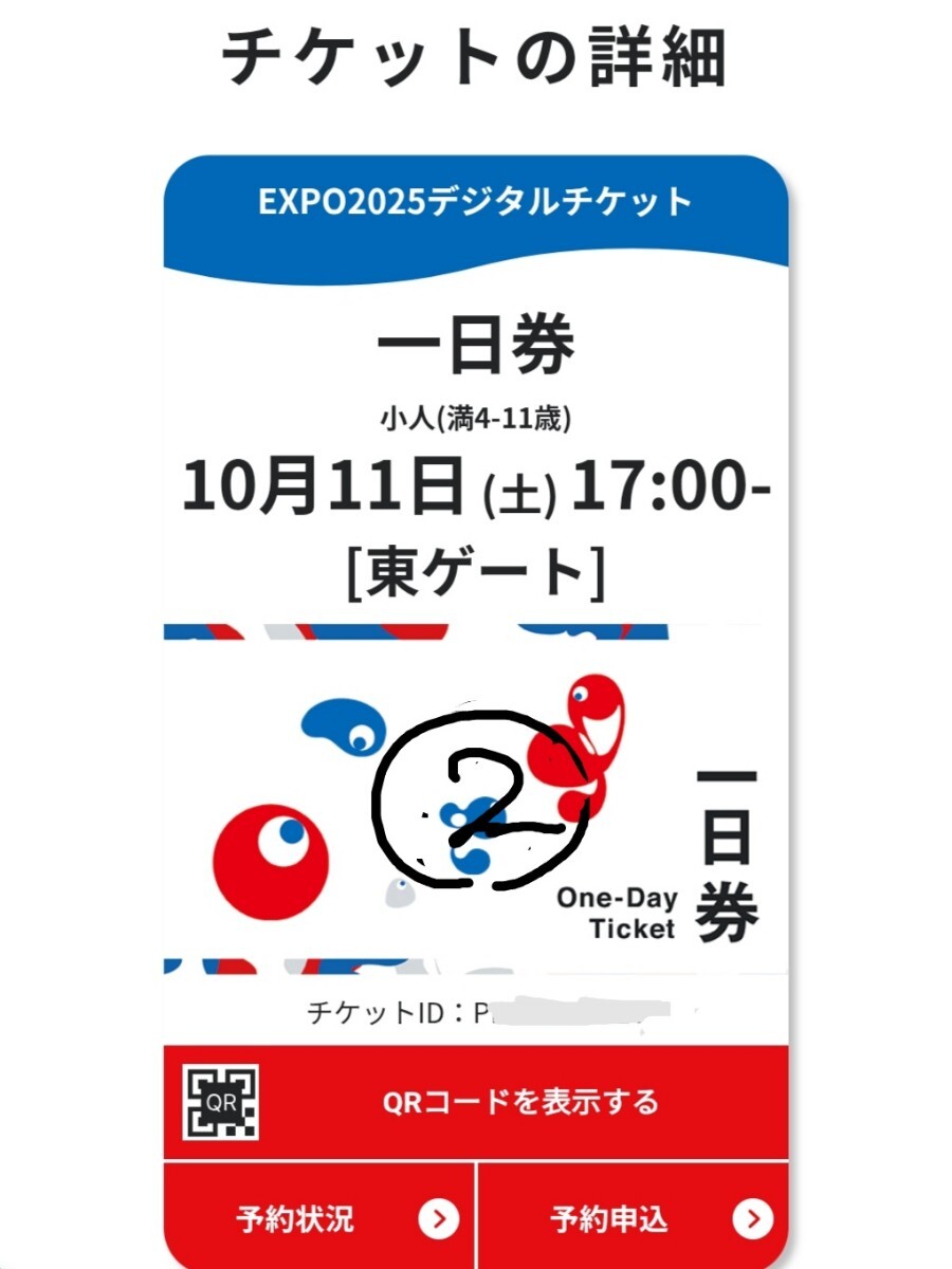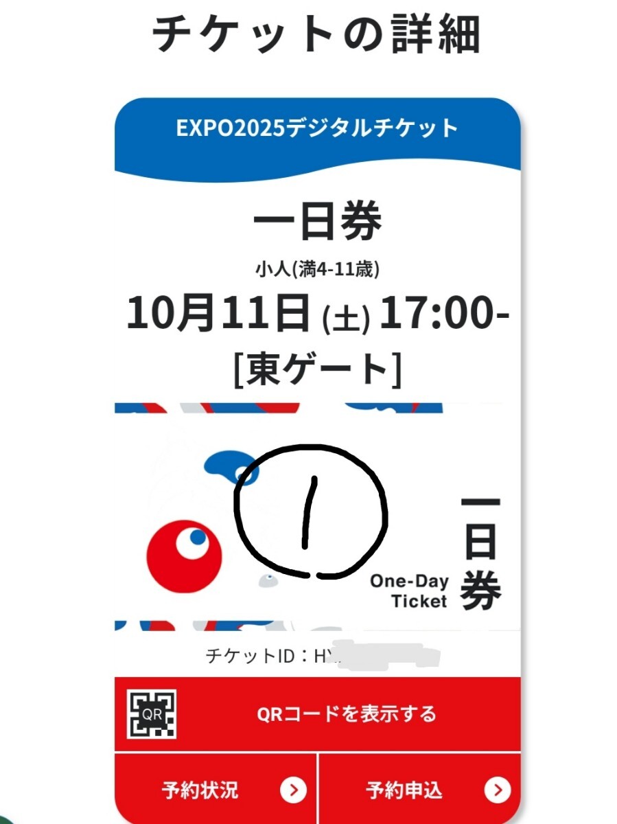 EXPO2025 大阪関西万博 10月11日 (土) 東ゲート 17時予約済 1日券 小人 2枚