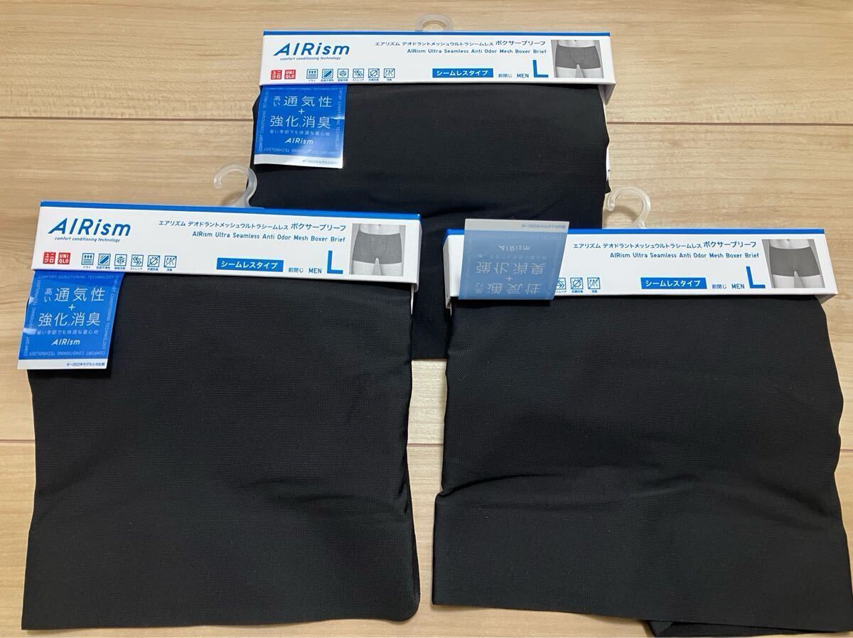 ・エアリズム デオドラントメッシュ ウルトラシームレス ボクサーブリーフ シームレスタイプ (前閉じ)Lサイズ 3枚 ブラック