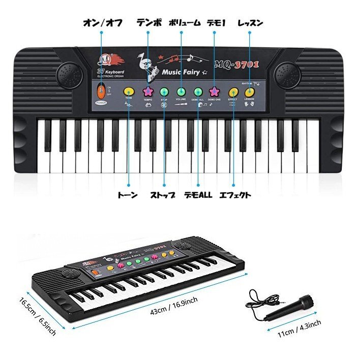 | 37鍵盤 ミニマイク付き 電子キーボード |