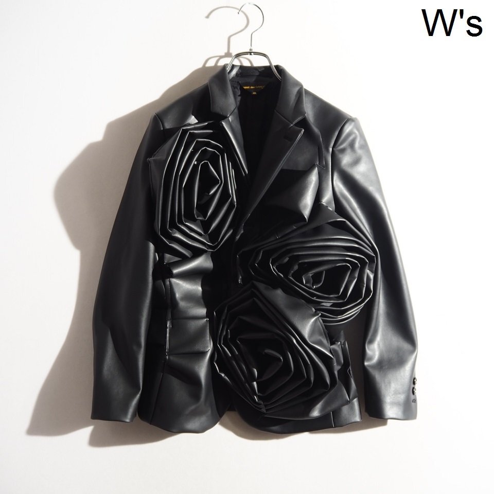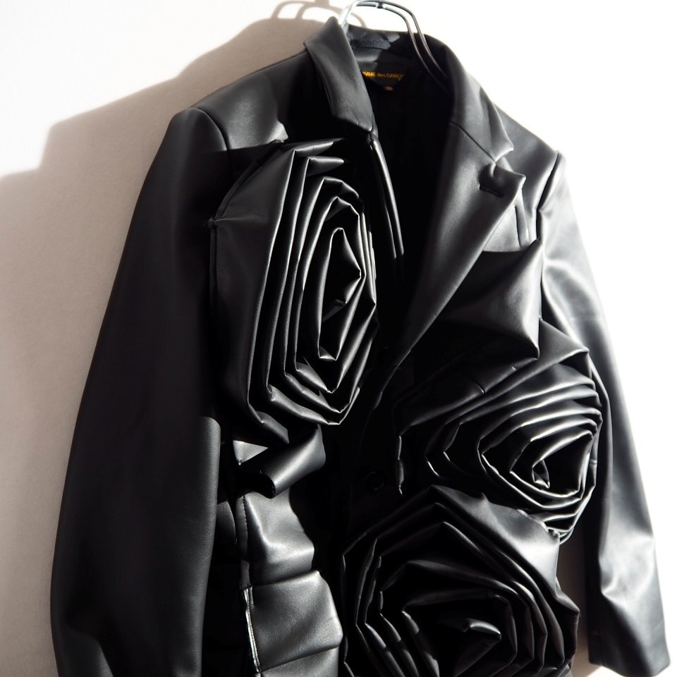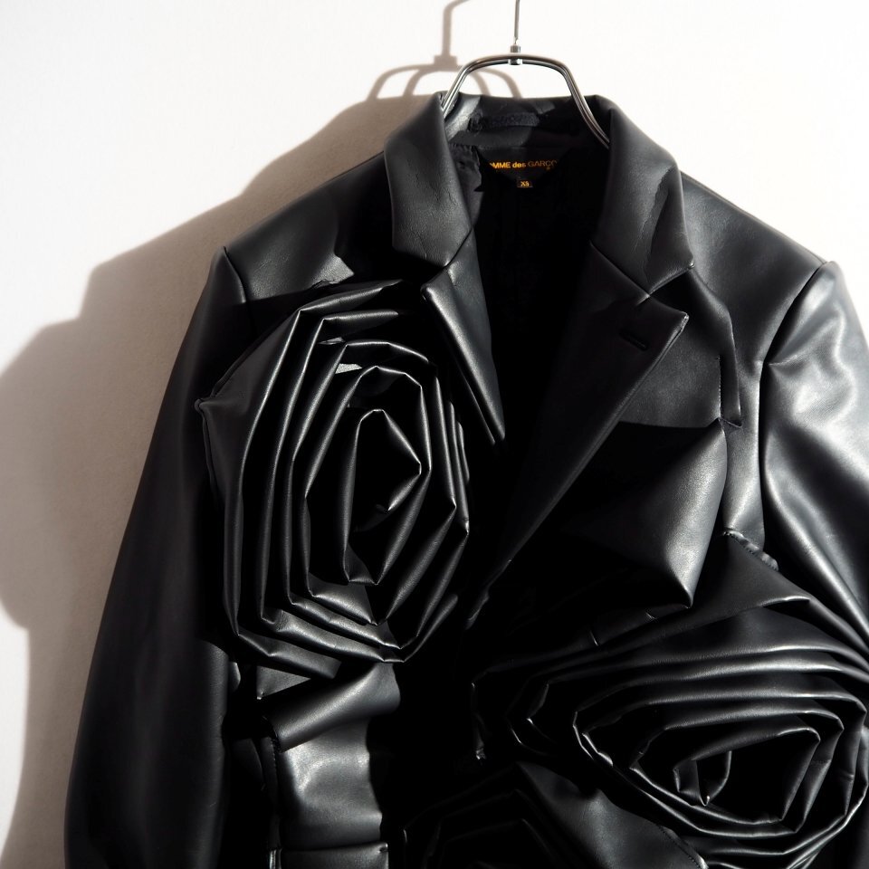 R2497P ▼COMME des GARCONS コムデギャルソン▼ 24AW エコレザー フローラルジャケット ブラック XS / レザージャケット 秋~春 rb mks