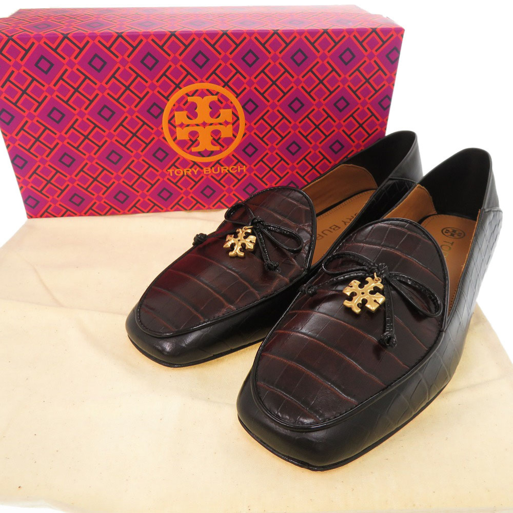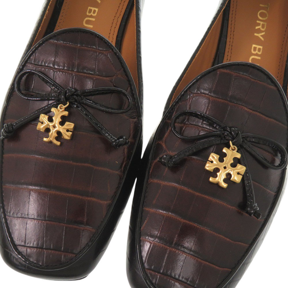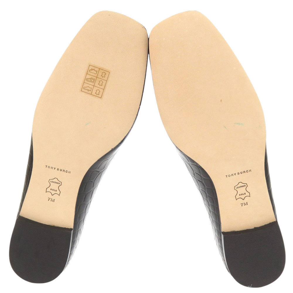 未使用品 トリーバーチ トリーチャーム サイズ7M 型押しレザー ブラック ブラウン フラットシューズ パンプス 0793 Tory Burch