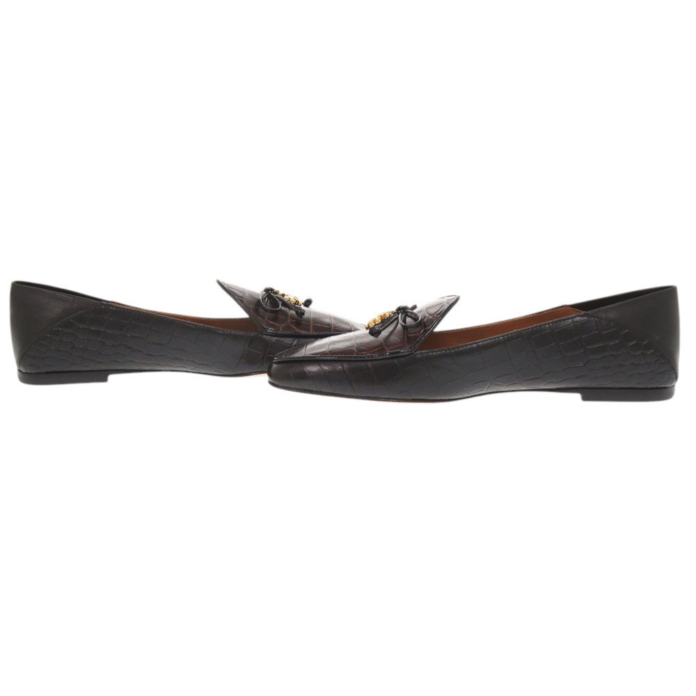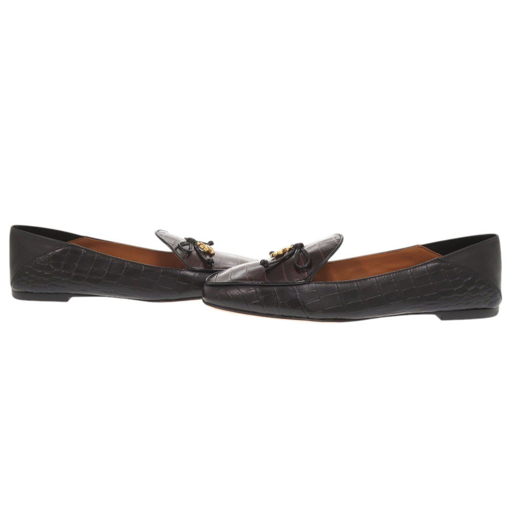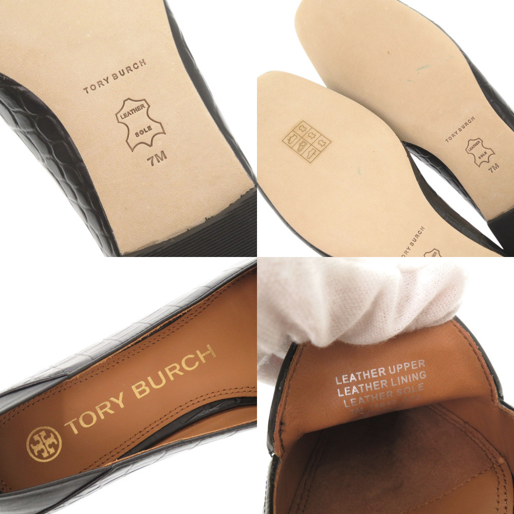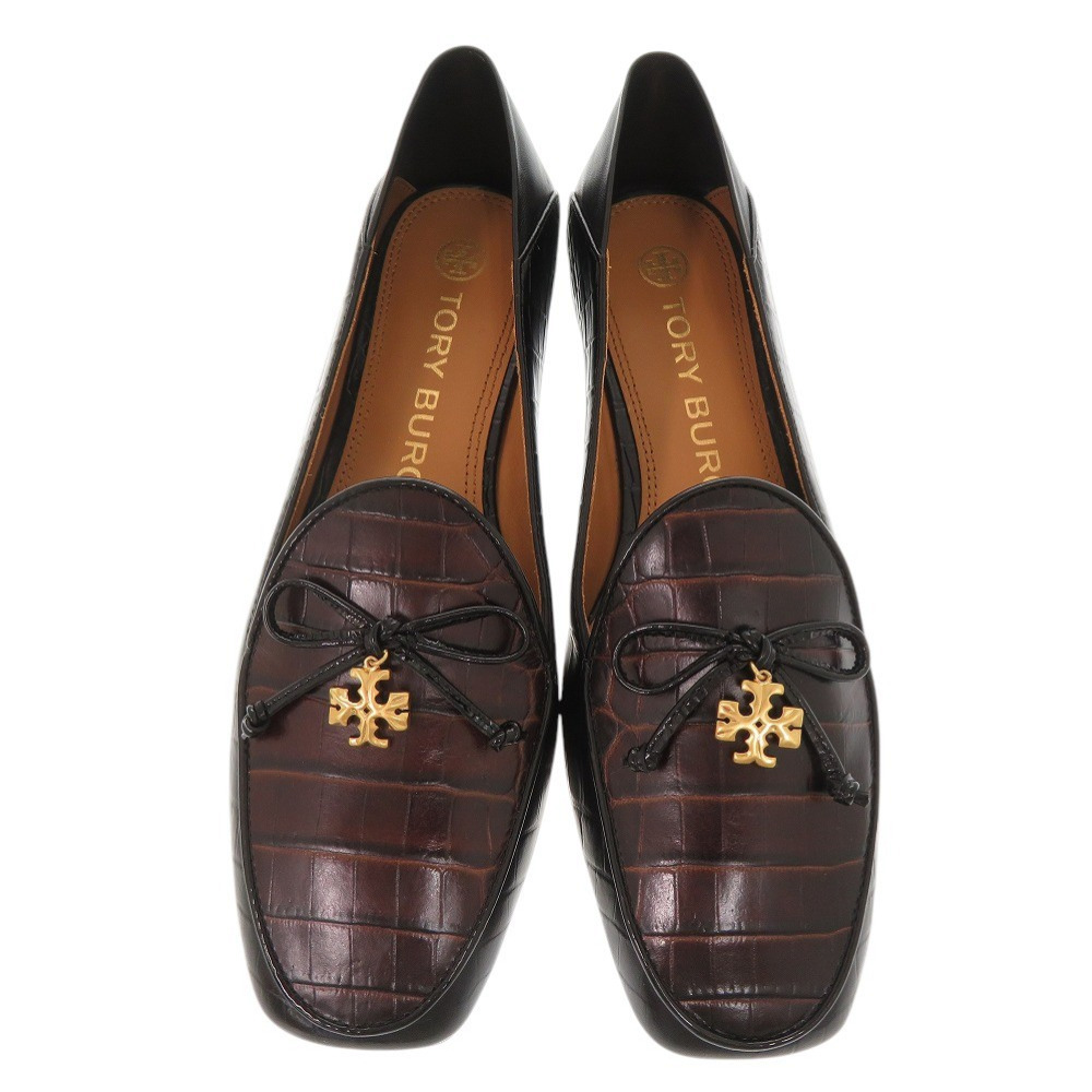 未使用品 トリーバーチ トリーチャーム サイズ7M 型押しレザー ブラック ブラウン フラットシューズ パンプス 0793 Tory Burch