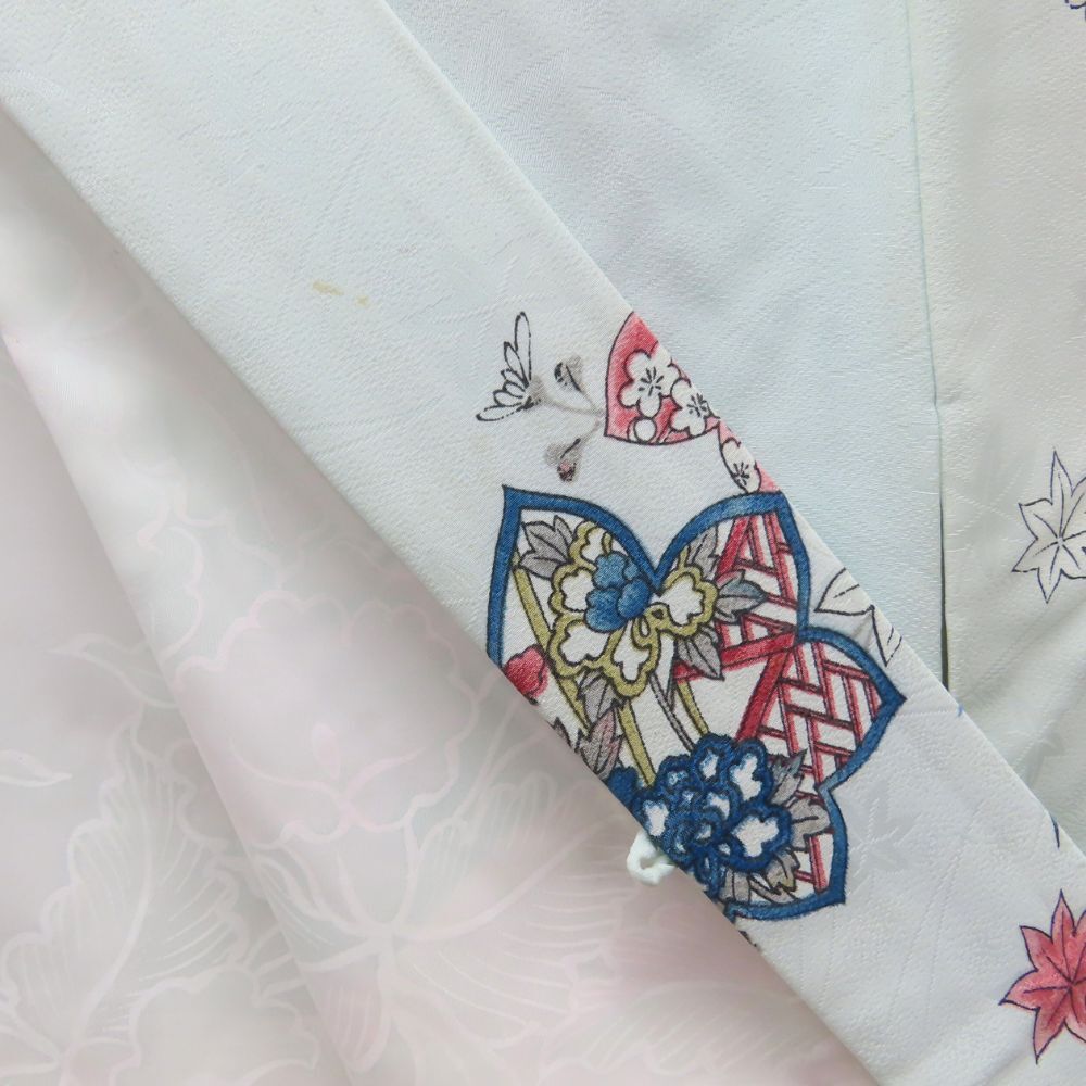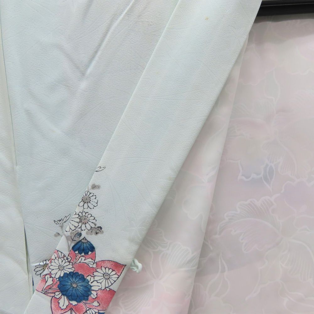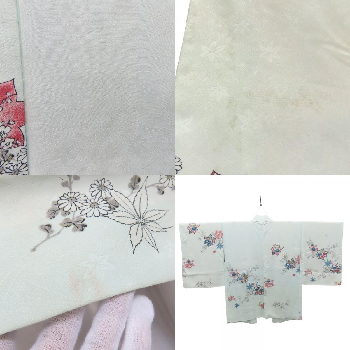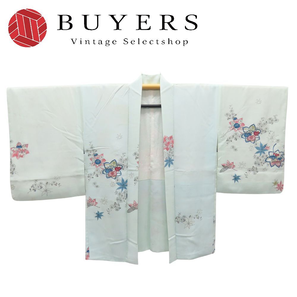 中古 羽織 ポリエステル ライトブルー ブルー系 ピンク マルチカラー お洒落 和装 呉服 和服 きもの レディース 女性