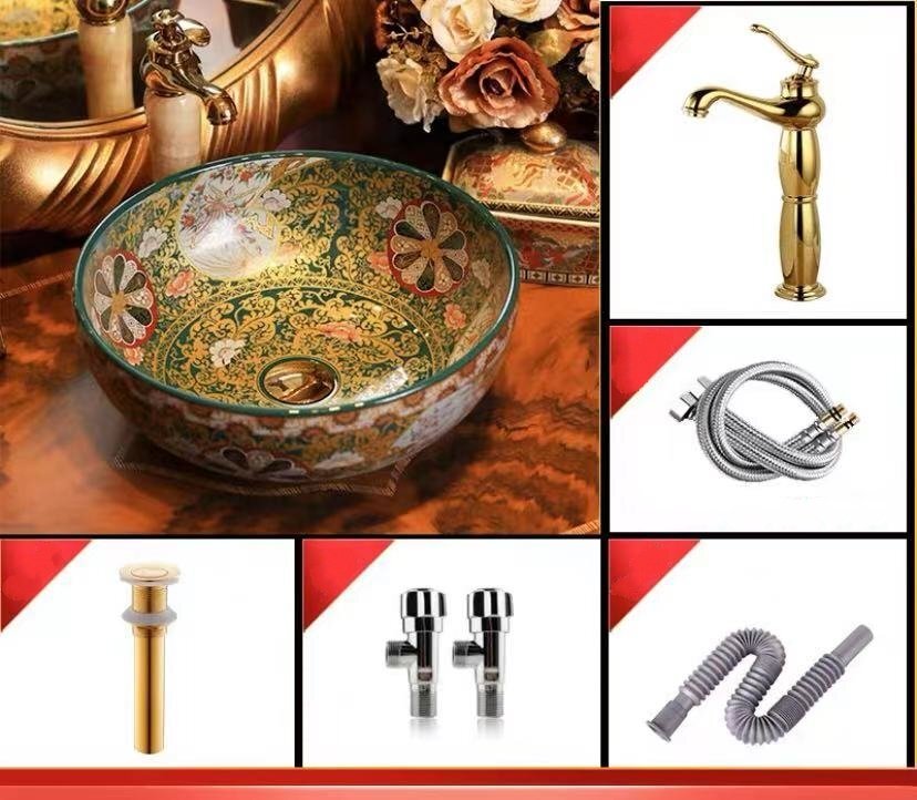 新品★高級洗面台★洗面ボウルセット 陶器 洗面ボール 手水鉢 手洗器 手洗い鉢 洗面器 蛇口 排水金具付き