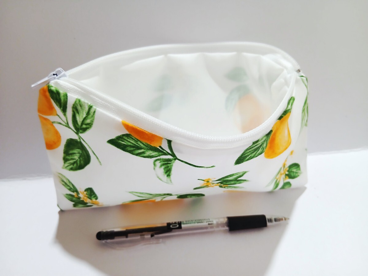 ペタンコ仕様の横長フラットフリーポーチを作りました