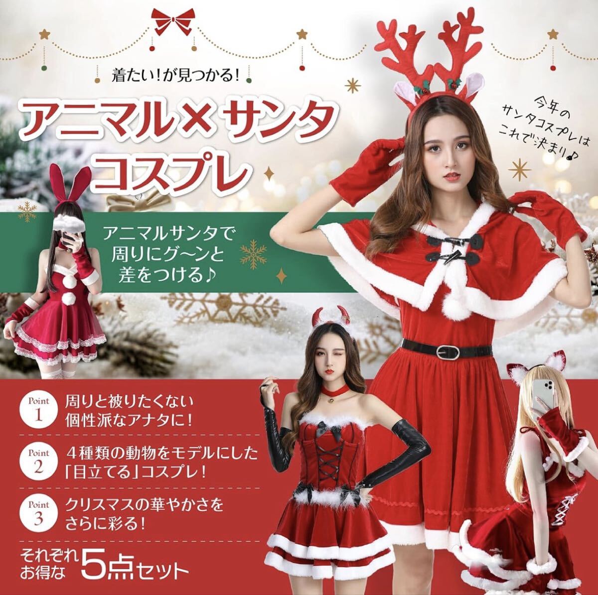 華やかでかわいい!彩桜の【2024年サンタコスチューム5点セット】