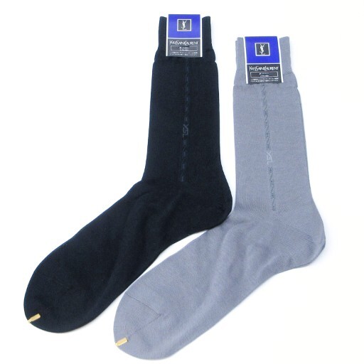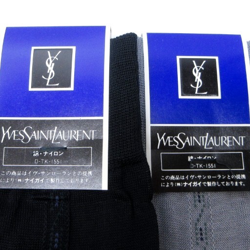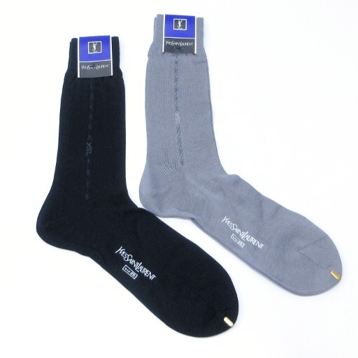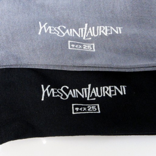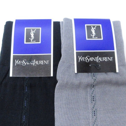 未使用品 イヴサンローラン YVES SAINT LAURENT タグ付 靴下 ソックス 2点セット ロゴ柄 25cm 黒 灰 ブラック グレー 0927 メンズ