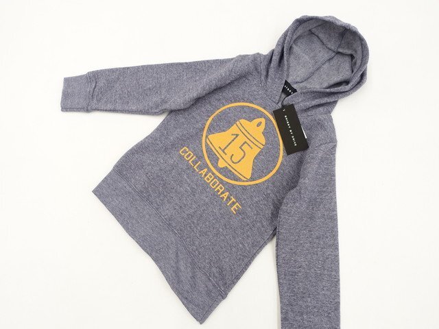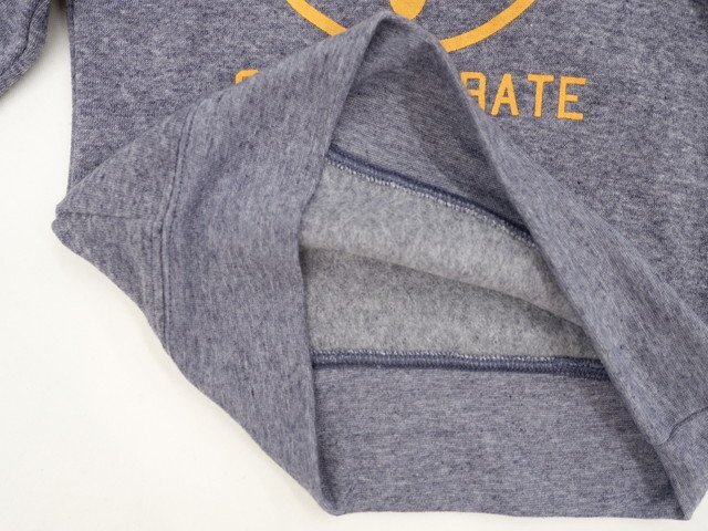 長袖 裏起毛プルオーバーパーカー 110 ブルーグレー杢地 オレンジ ベル&英字プリント