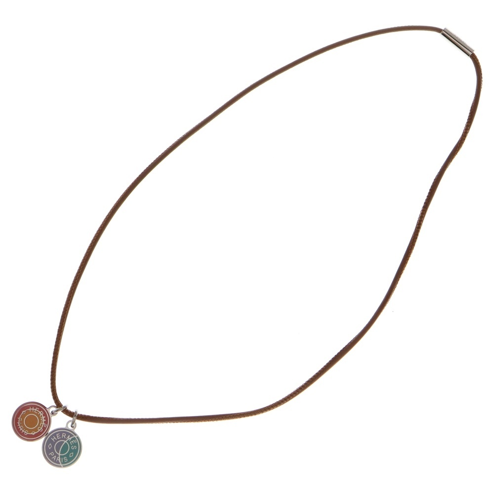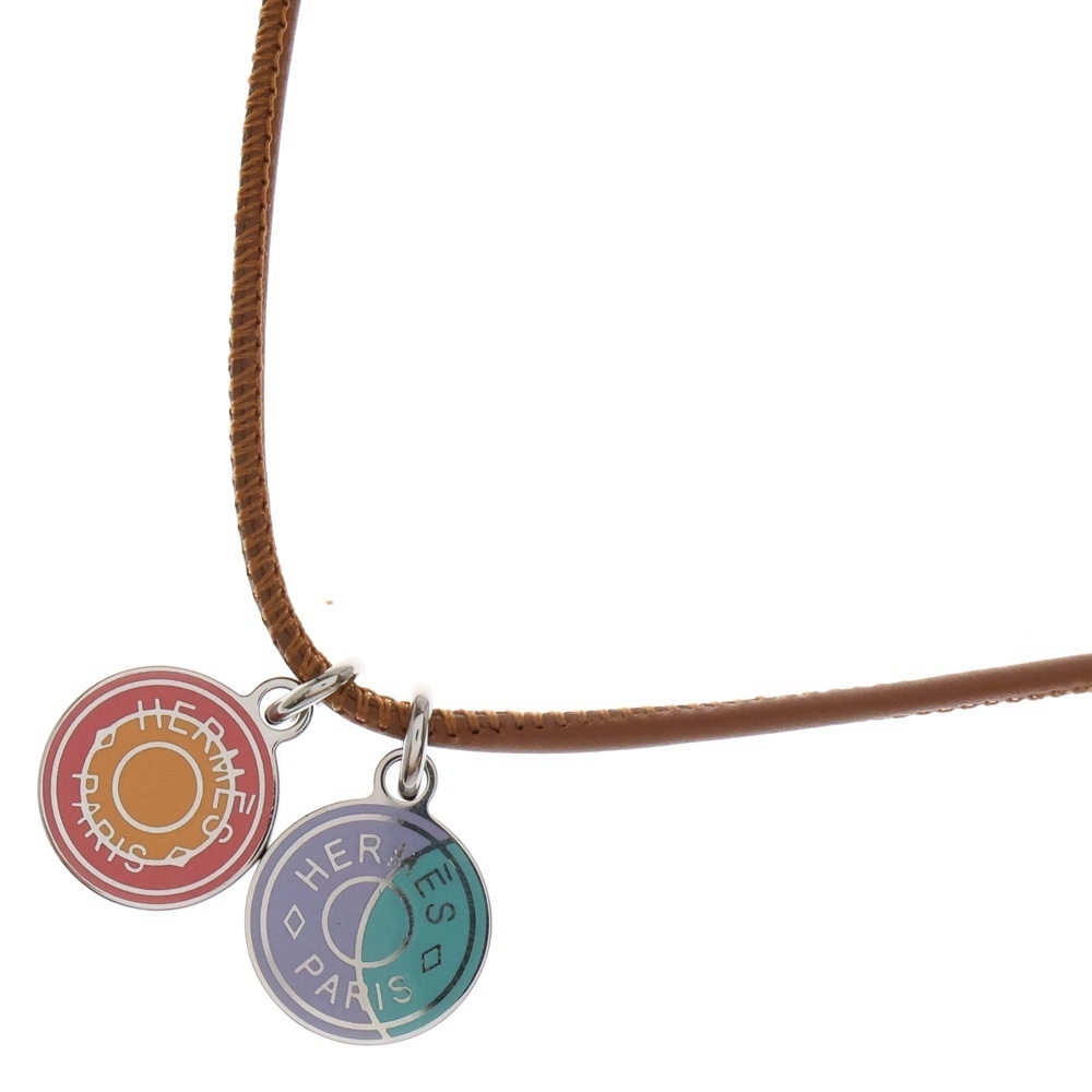 HERMES エルメス エクリプス レザー ネックレス ステンレススチール ブラウン/マルチカラー