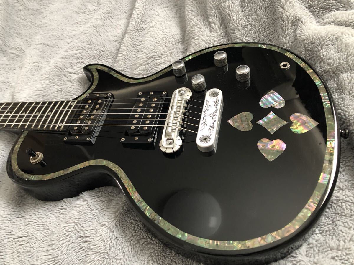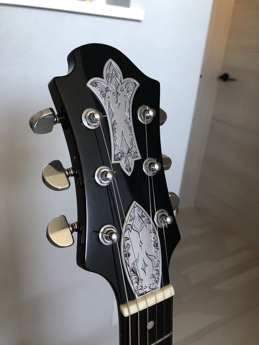 ヘッド部のエンブレムとトラスロッドカバー、またテールピースに墨入れがしてあります。