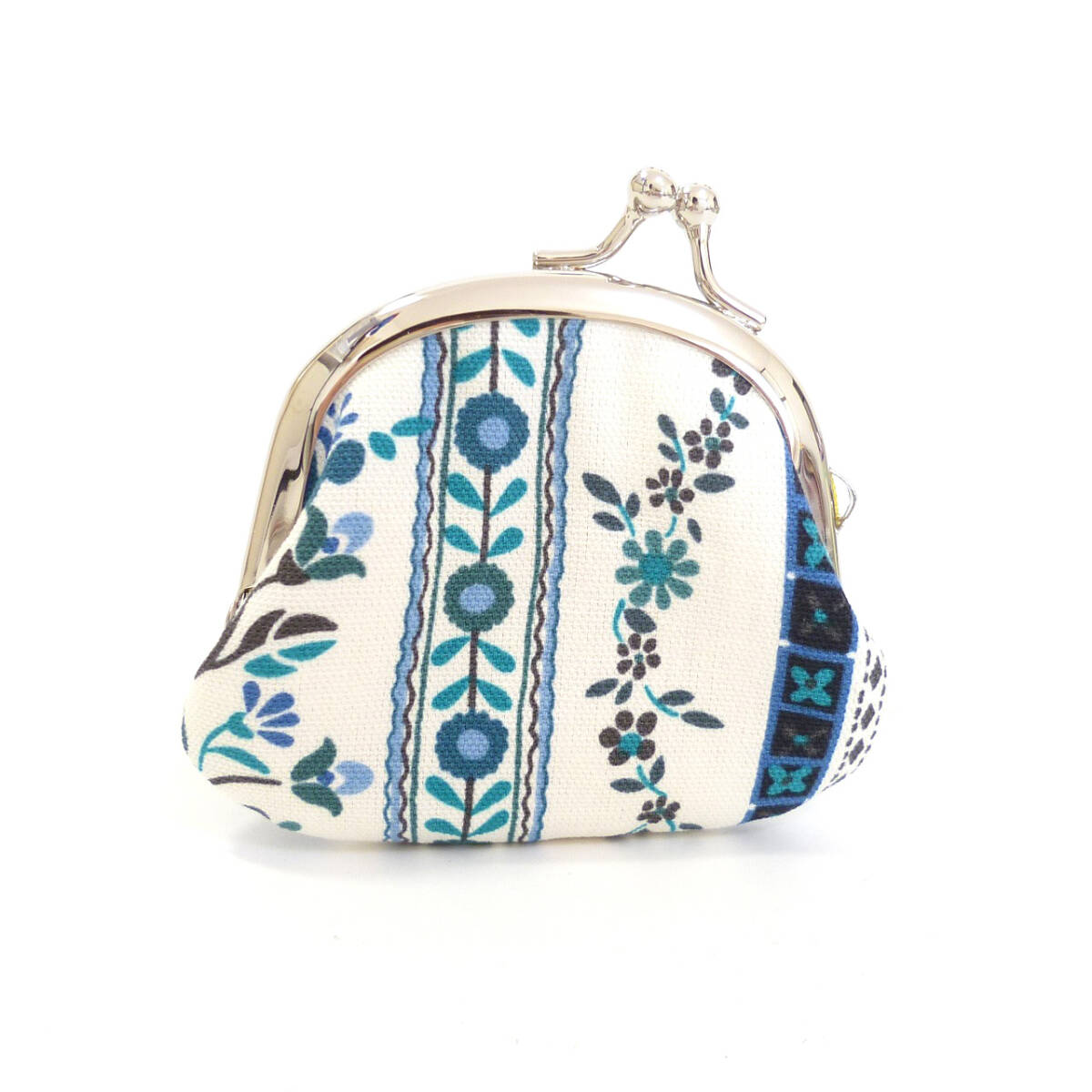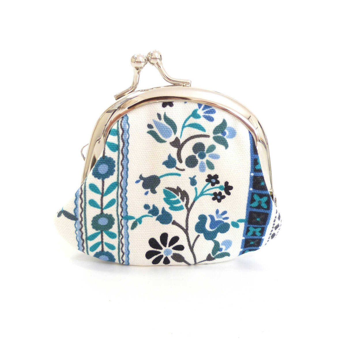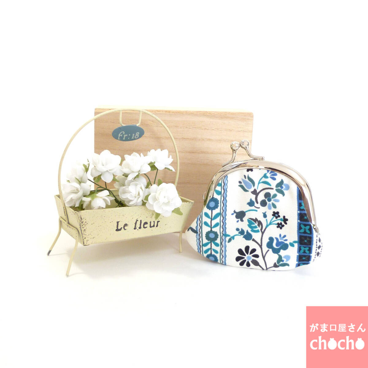 ミニ がま口 小銭入れ 花柄 青 コインケース ハンドメイド G629