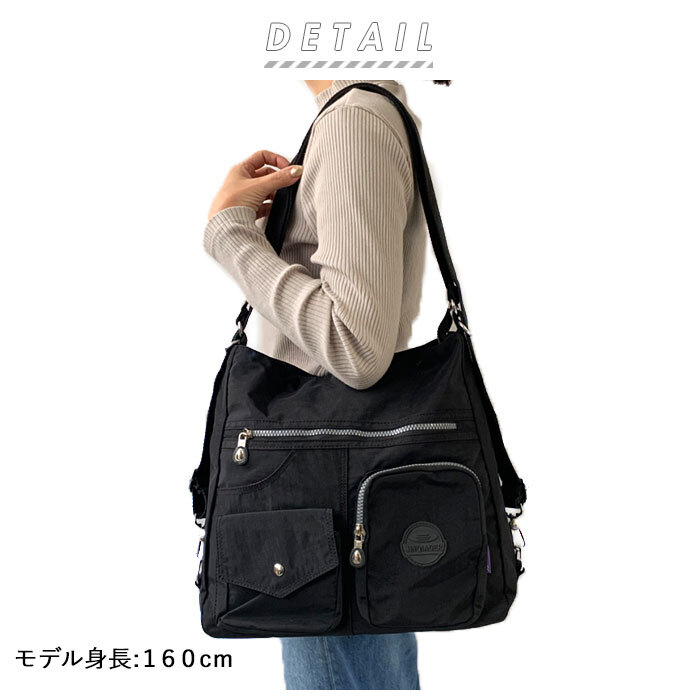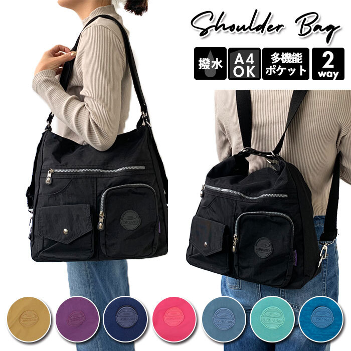 商品説明 | ・・使い勝手の良さが嬉しい♪多機能ポケットが付いたショルダーバッグの新登場。 ・ショルダーベルトを両サイドに引っ張ると、リュックとしても使える2WAYタイプ。 ・バッグのフロントにはファスナーポケット×2、マグネット式で開閉できるミニポケット×1、オープンポケット×1を装備。 ・バッグ背面にも横型のファスナーポケット×1を装備した多収納ポケットが施されたデザインで小物整理がしやすい。 ・内側のメイン収納はファスナーポケット×1,オープンポケット×2を装備し、A4サイズの書類やノートが入るサイズ! ・しっかりした素材感なのに軽量な作りで、たくさんの荷物を運べる大容量バッグ。 ・ショルダーベルトは幅広タイプを採用したことにより、肩に掛けやすく、痛くなりにくい設計なのが嬉しい。 ・男女ともに持てるユニセックスデザインで豊富なカラー展開。普段使いだけでなく、旅行用バッグとしてもおすすめ! |