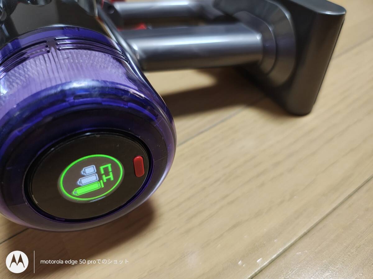 フル充電でテスト用のクリーナーヘッドを床に密着させて負荷をかけた状態(強運転)で5分00秒稼働しました。