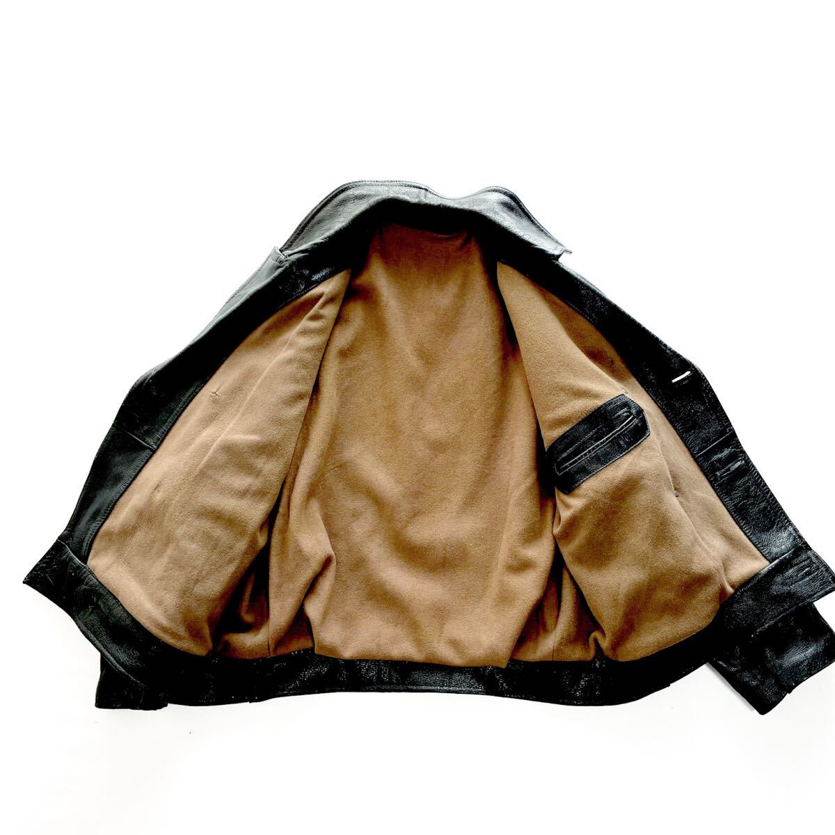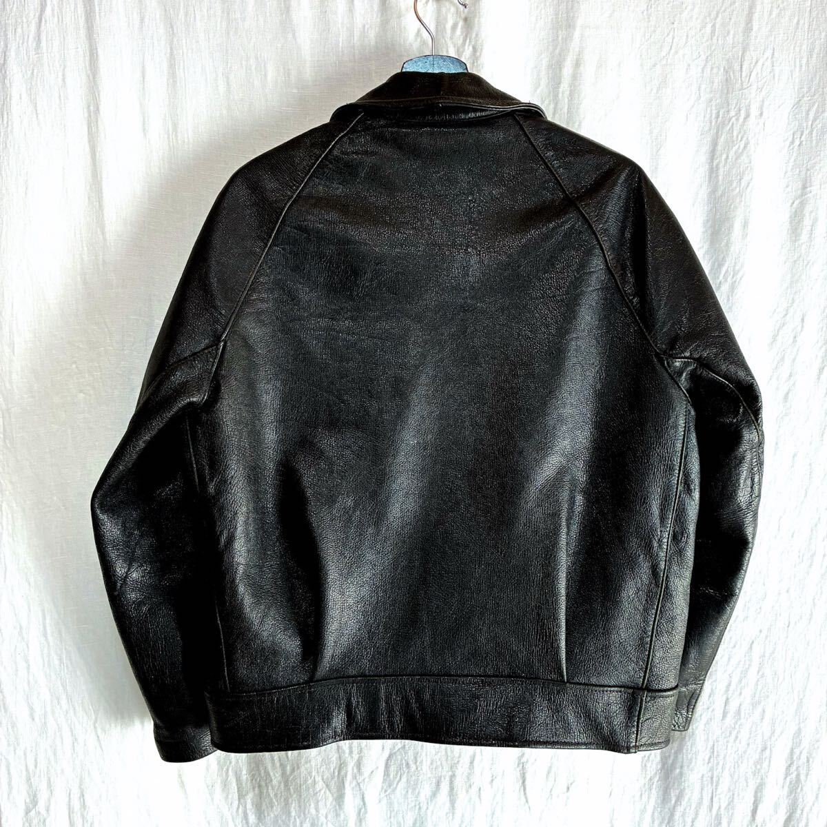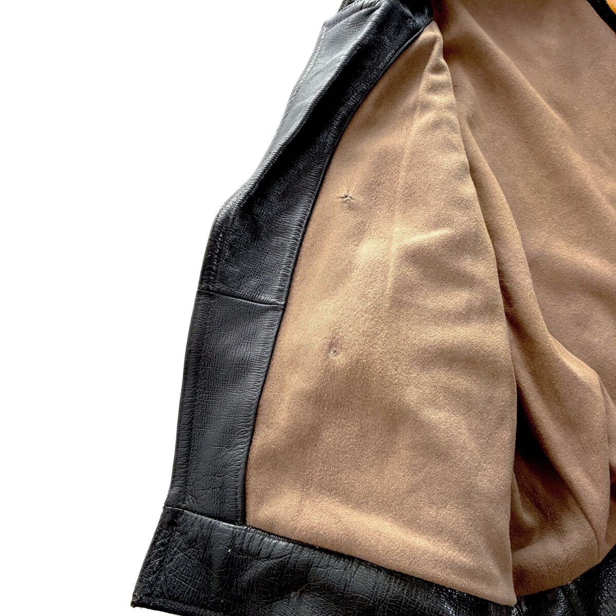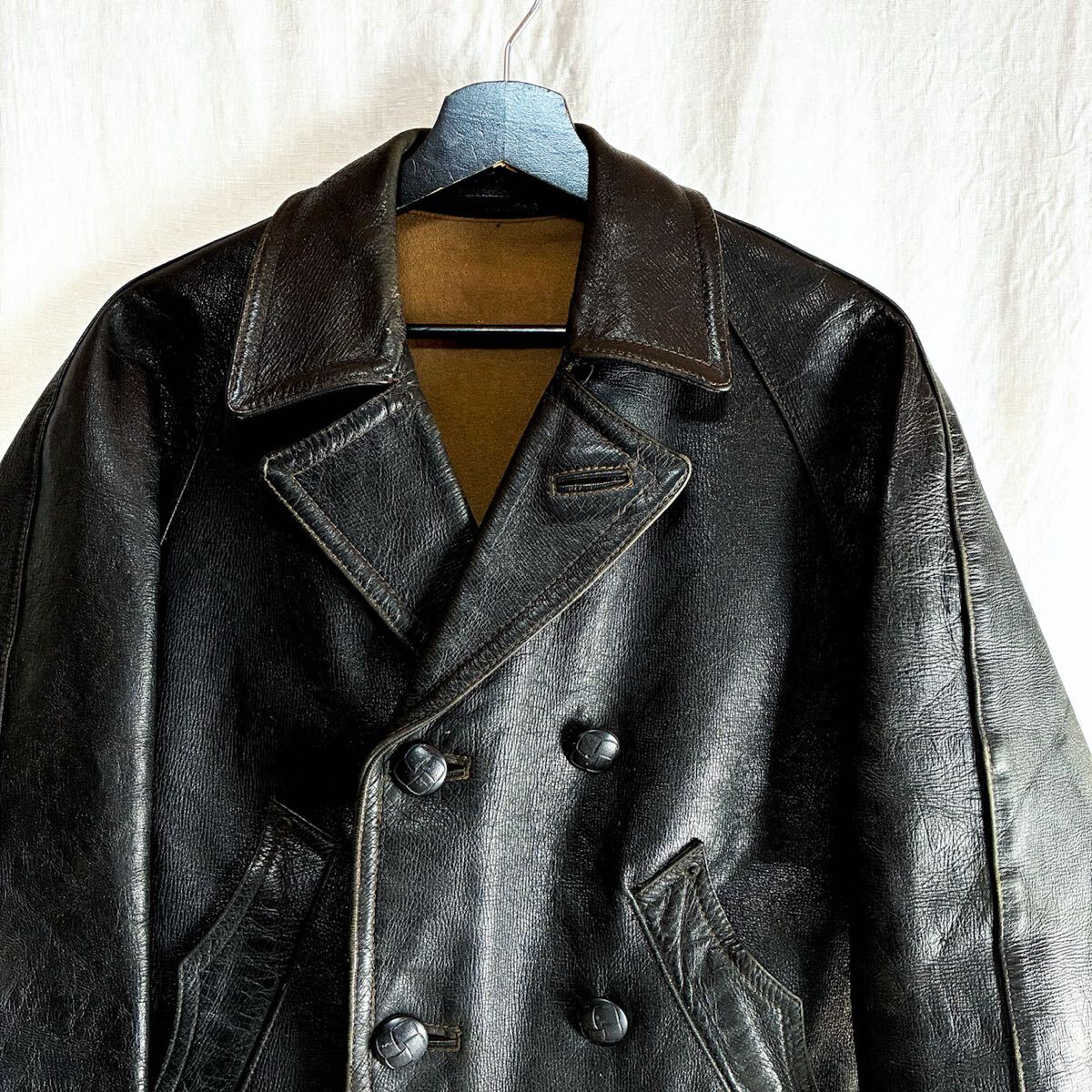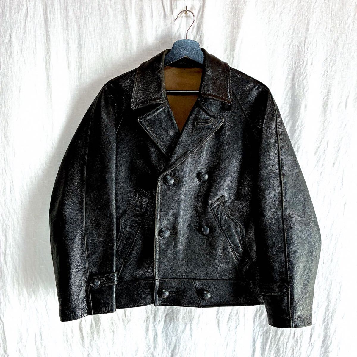 50s ユーロ ビンテージ ダブルブレスト レザー ライダースジャケット L 短丈 ドイツ軍 フランス軍 モーターサイクル