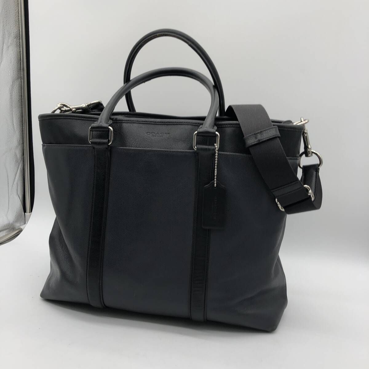 【極美品】COACH コーチ レザー 書類カバン ビジネスバッグ トートバッグ 2WAY ショルダーバッグ レザー ダークネイビー ブラック メンズ