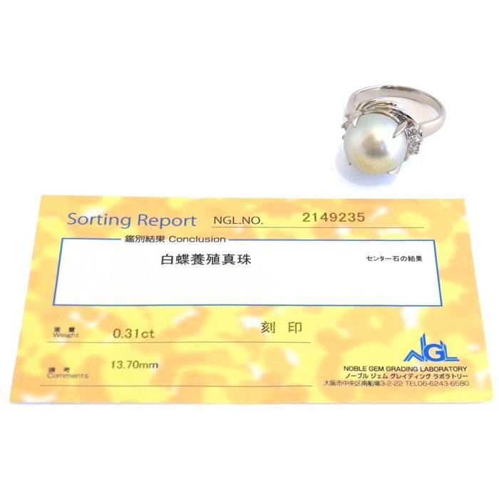 詳細 | パール:13.7mm ダイヤモンド:0.31ct 14.8g ※パールには当たり傷・擦れ傷があります。ダイヤモンドには10倍のルーペで確認できる天然特有のインクルージョンがあります。 ※Pt900には多少の小傷やくすみがあります。 ※画像の色の見え方は、お使いのモニターやディスプレイによって異なります。 | ||