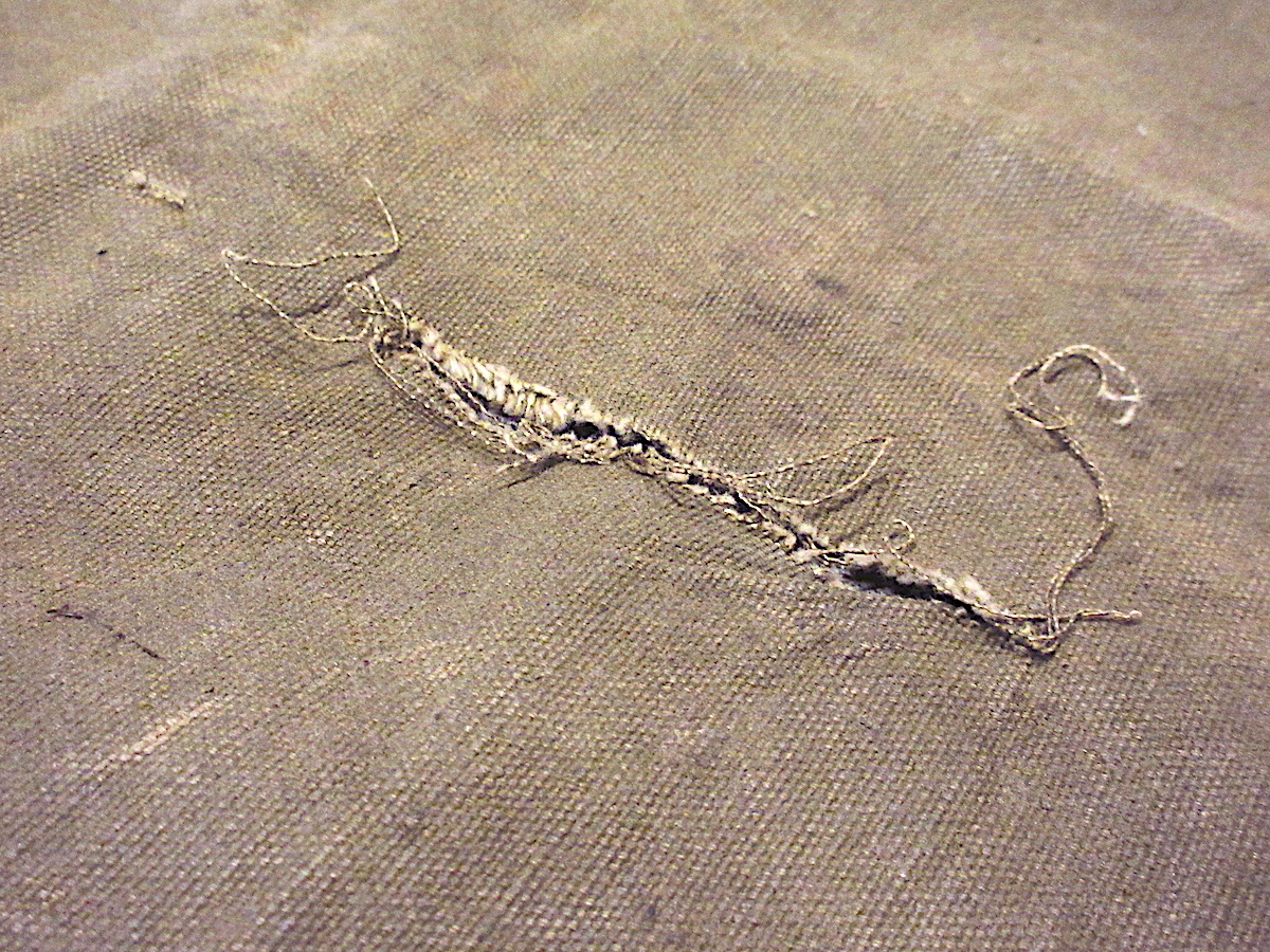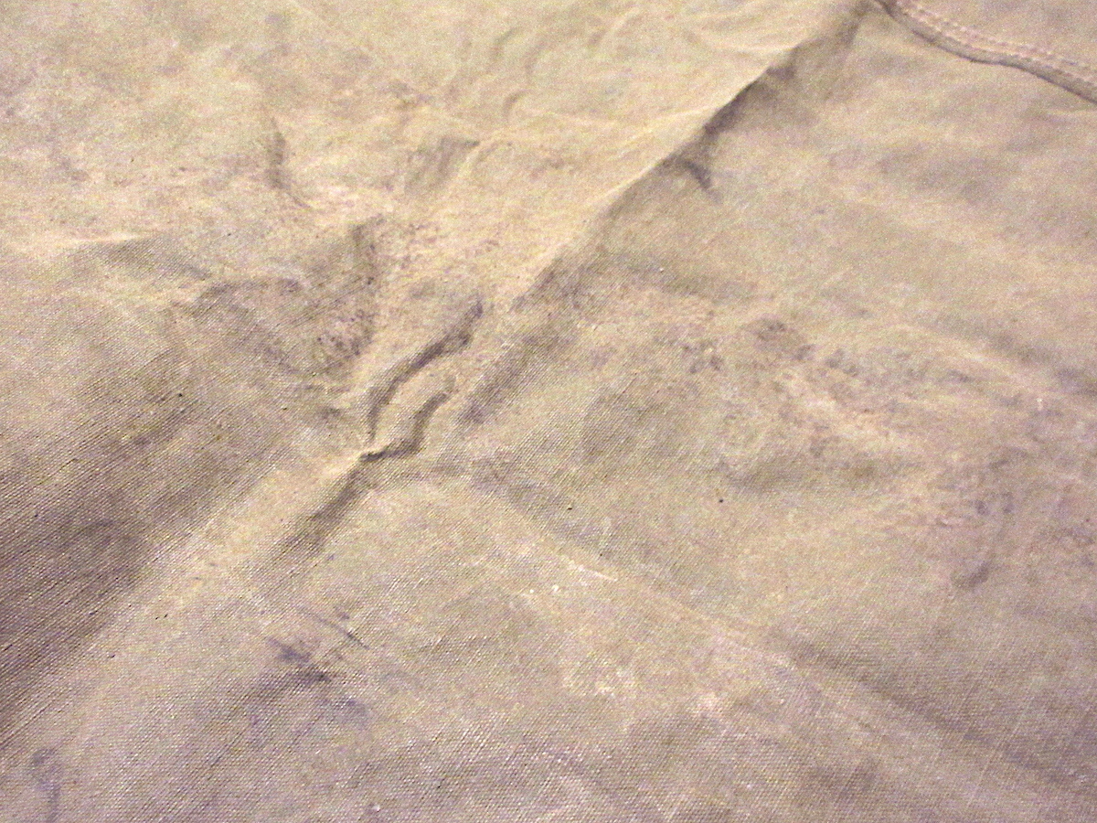 1箇所破れ、砂が付着している、全体的にスレ、シミ、あたり