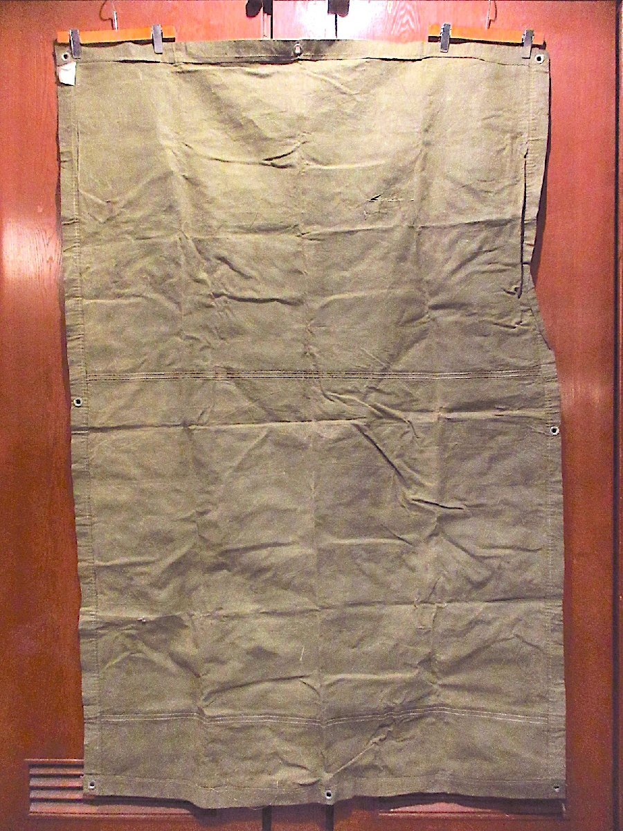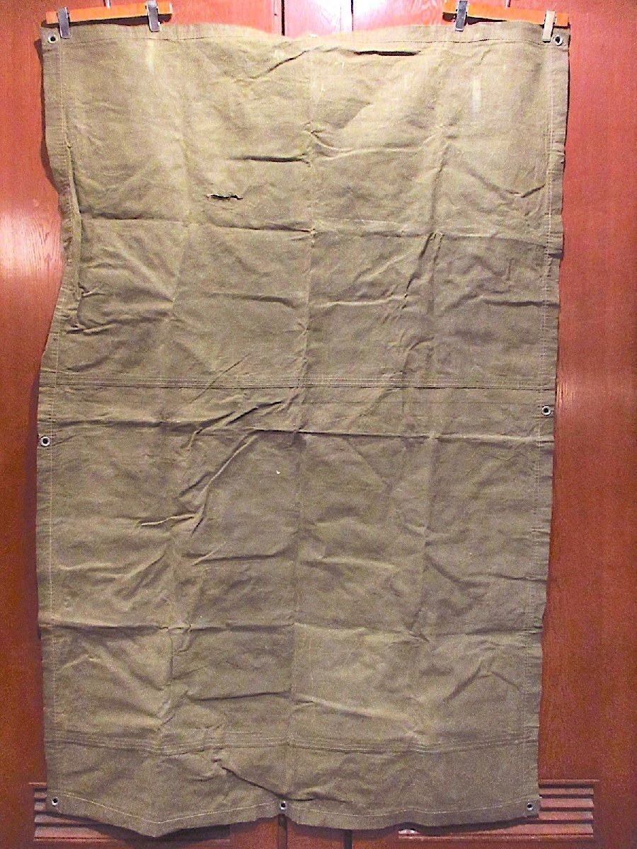 ~1940's ミリタリー? ハトメ付き キャンバスファブリック オリーブグリーン size 約190cm × 約123cm