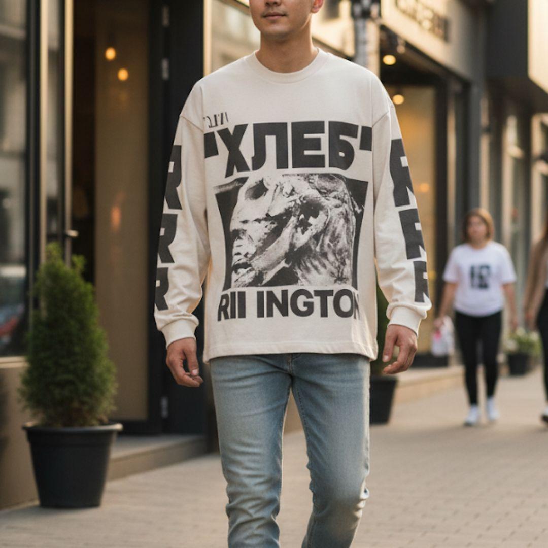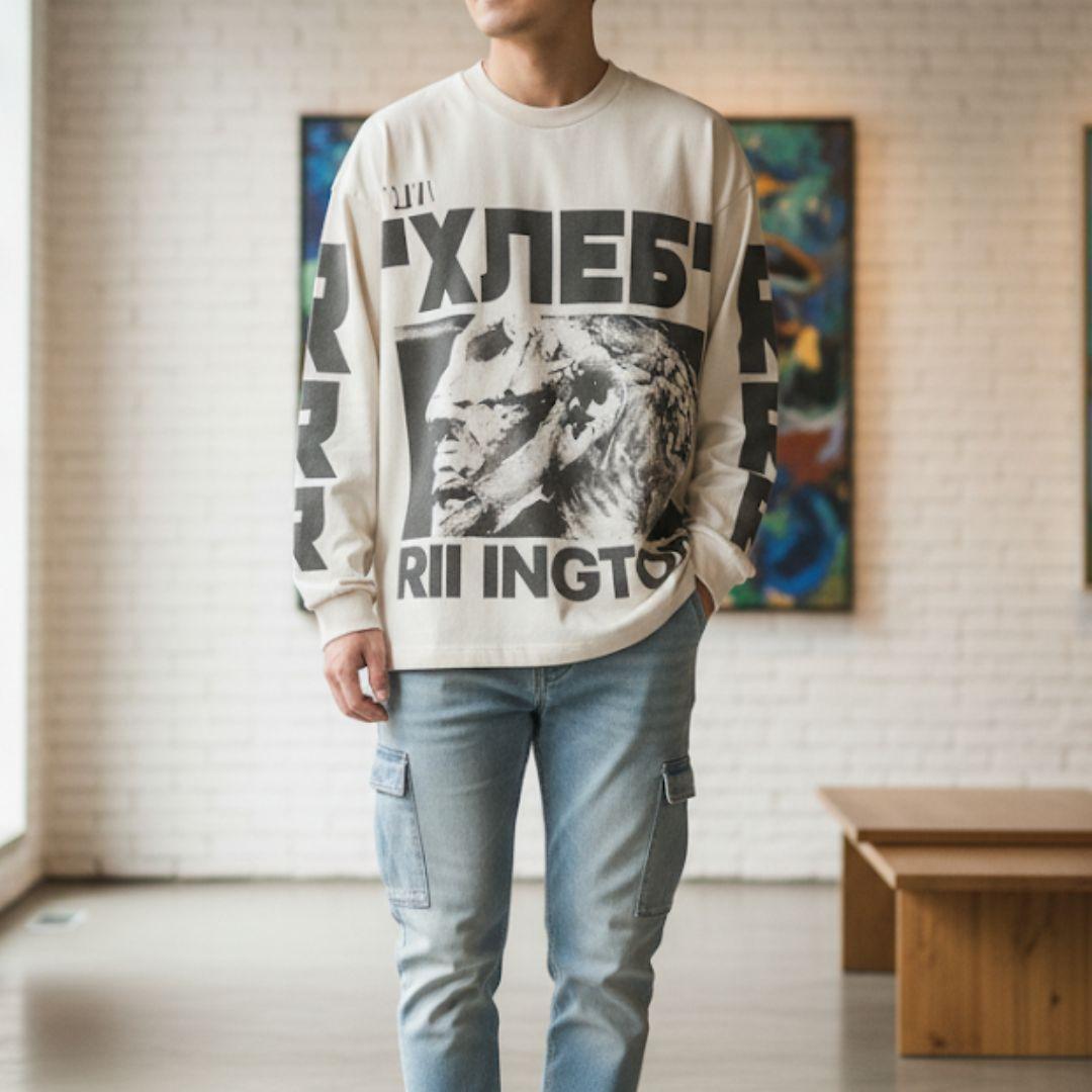 #ロンT #ストリートファッション #ビッグプリント #ユニセックス #オーバーサイズ #カジュアルコーデ #長袖Tシャツ #アートTシャツ #古着mix #モノトーンコーデ