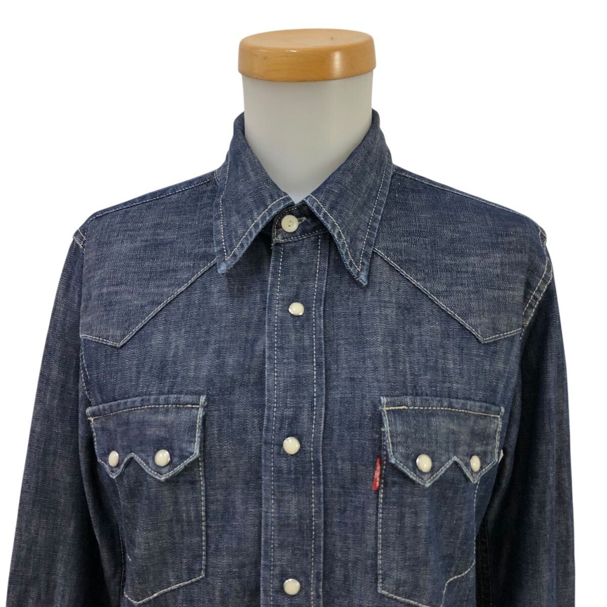 10Nm326-75 Levi's リーバイス デニム ウエスタンシャツ 長袖 シャツ ブラウス 羽織り トップス スナップボタン インディゴ レディース S