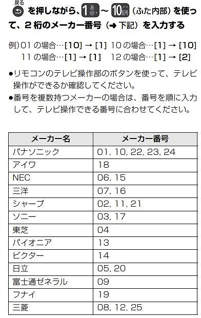テレビ操作の初期設定はビエラ、リモコンモードは1です。