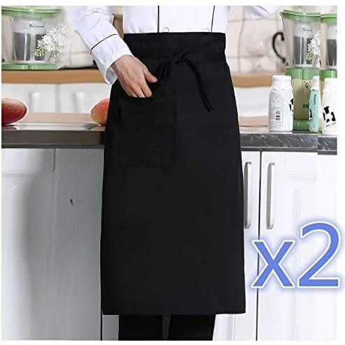 [Yヤクニタツ] エプロン 2枚セット カフェ サロン ソムリエエプロン 前掛け 飲食店 男女兼用 キッチン シェフ ソムリエ仕事用 家庭用 (黒