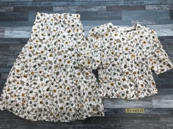 modiste sumie Hashimoto レディース 薄手 花柄 半袖シャツブラウス・スカート 上下セットアップ 7 グレー茶抹茶黄土色 です。