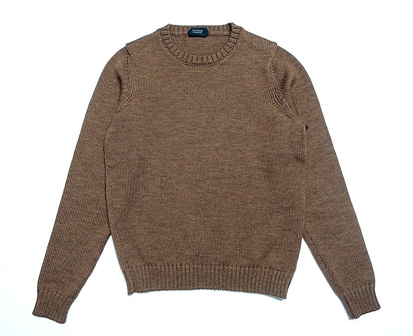 定価5.6万 使用僅か 超美品 ZANONE ザノーネ GIRO MAGLIA 5G ヴァージンウール クルーネック ニット セーター ブラウン系 メンズ 44