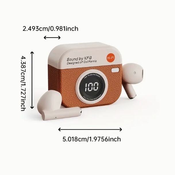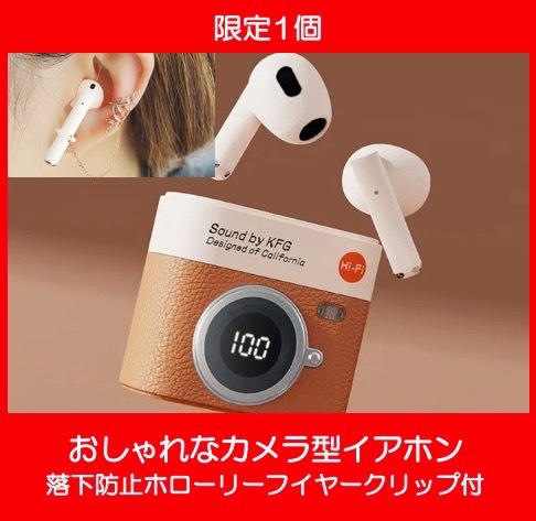 【ホローリーフイヤークリップ付】2025年最新おしゃれなカメラ型ワイヤレスイヤホン TWS 9D HIFIステレオ 通話ドルビーステレオ