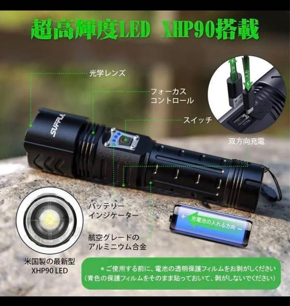 超高輝度5000ルーメン 軍用 小型 軽量 懐中電灯 防災 防水