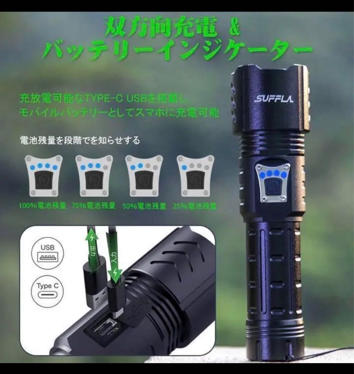 電源 バッテリー式, 充電式 光源タイプ LED ブランド SUFFLA 明るさ 5000 lm 電池の個数 1 リチウムポリマー 電池(付属)