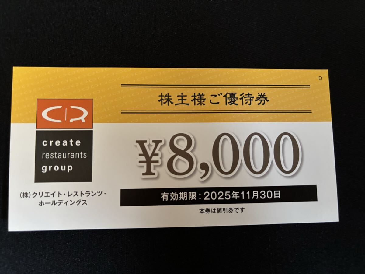 ●クリエイトレストランツ株主優待 8000円券 1枚です。