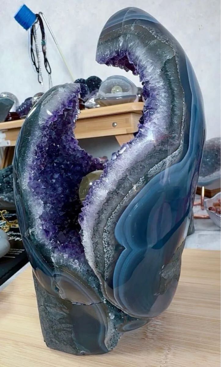 SS050紫水晶蛇様 縁起物 天然水晶 アメジスト 瑪瑙母岩 一品一図 一点物 置物 開運 幸運 お守り パワーストーン 3kg 九紫火星運