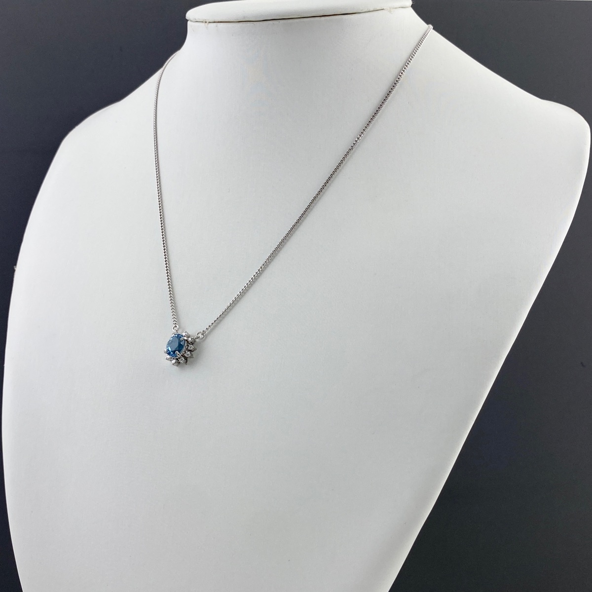 トップ:Pt900、チェーン:Pt850 アクアマリン:1.15ct、メレダイヤ:0.19ct 中古品の為、若干のキズや汚れがございます。 |