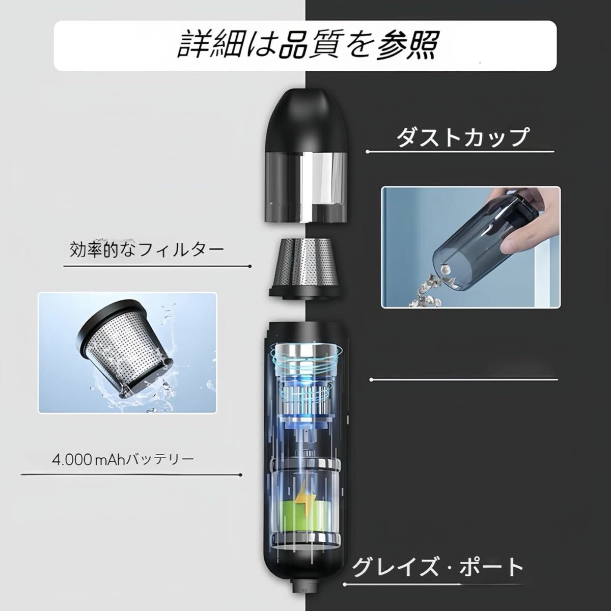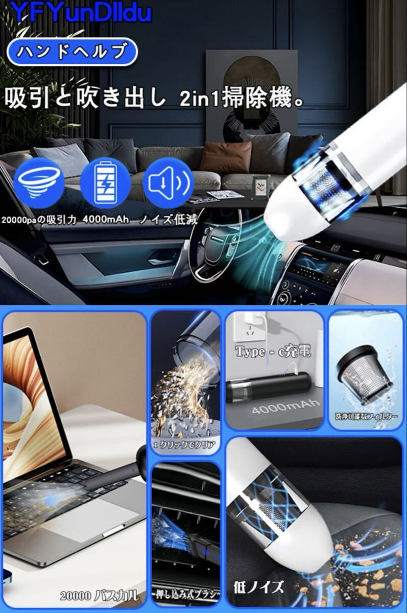 YFYunDlldu ハンディクリーナー コードレス|20000Pa強力吸引×鉄製フィルター|吹き飛ばし/吸引/空気抜き対応|470g超軽量&静音|車用/エアコン裏/キーボード掃除に最適|Type-C急速充電 ブラック