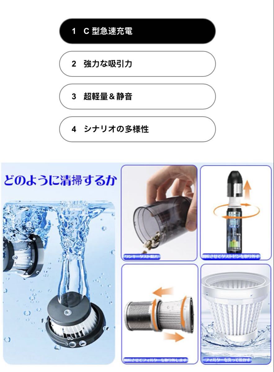 【静音設計&安心の充電性能】 静音52dB設計で、映画1本分(約2時間)で充電完了し、約30分間連続使用可能。充電中もLEDインジケーターで状態をわかりやすく表示。過充電防止の自動停止機能付きで、安全にお使いいただけます。仏壇掃除など静かな環境でも気になりません。