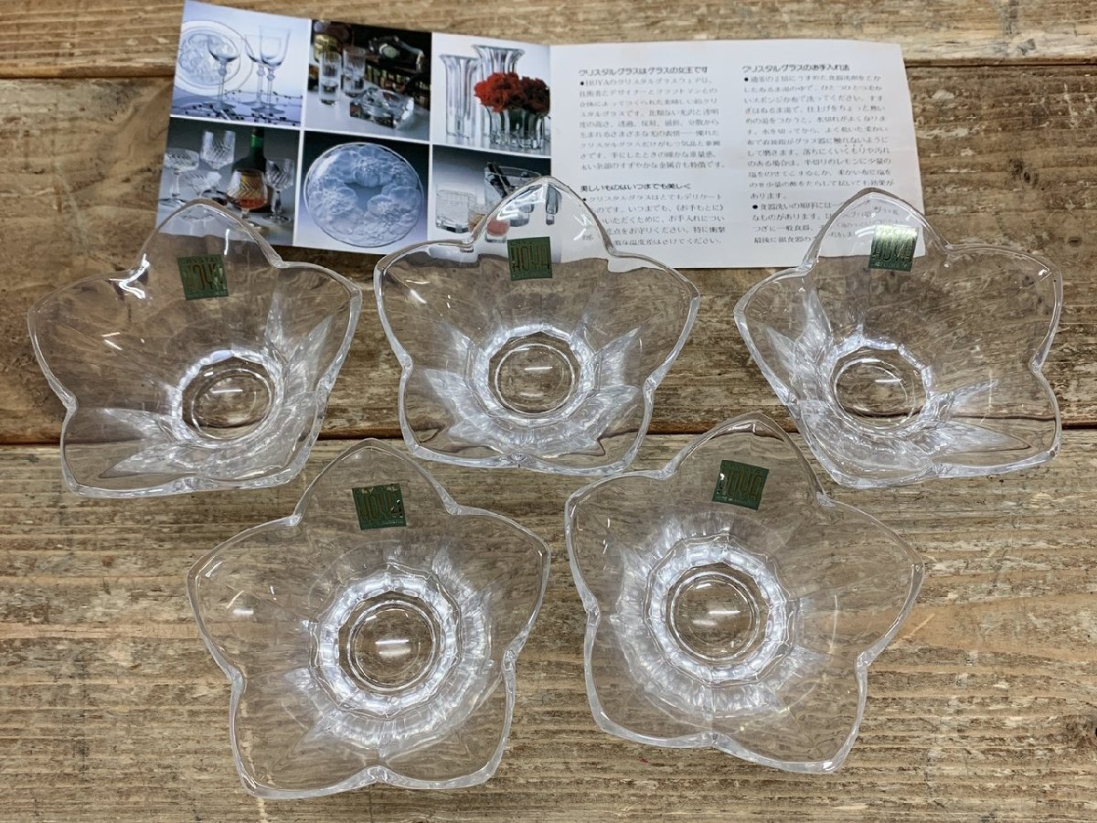 【N-7950】即決 未使用 HOYA クリスタル 小さい器 5客セット 小鉢 約10x6cm 花型 ガラス 東京引取可【千円市場】
