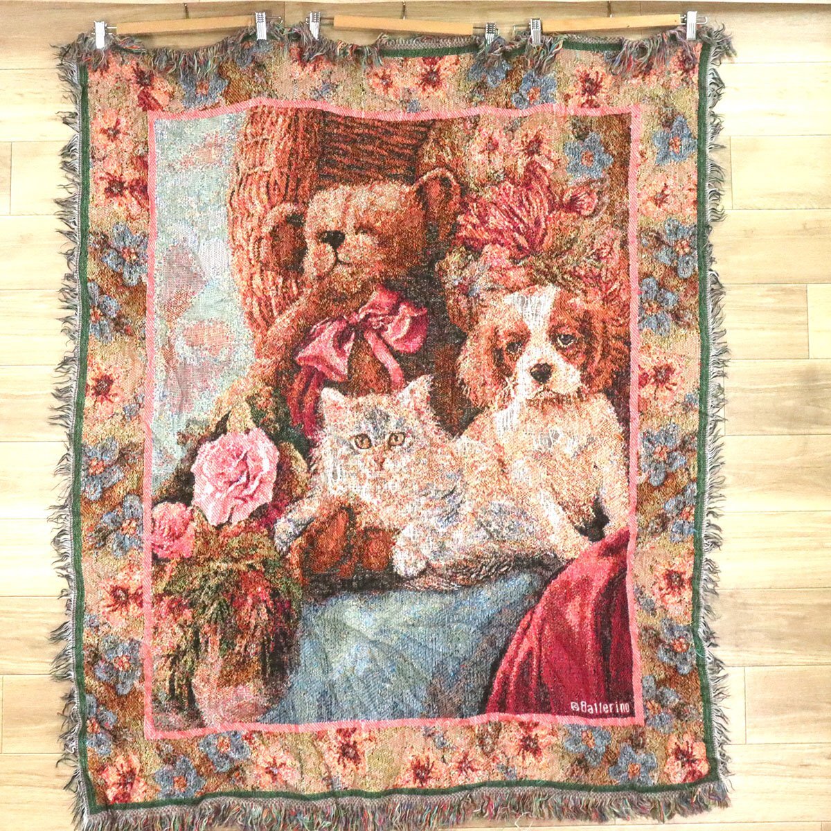 $1-13 I/O9.11-5 猫 キャット 犬 ドッグ キャバリア クマのぬいぐるみ ラグ マット カーペット ブランケット タペストリー