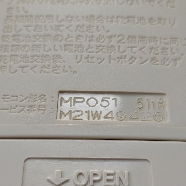 J5760◆三菱 エアコンリモコン MP051(ク)