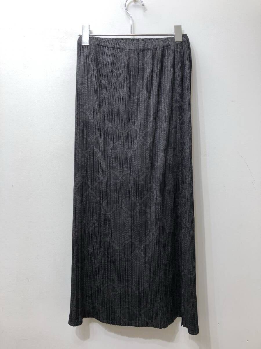 637☆PLEATS PLEASE プリーツプリーズ☆イッセイミヤケ☆ヘビ柄ロングスカート【3】黒