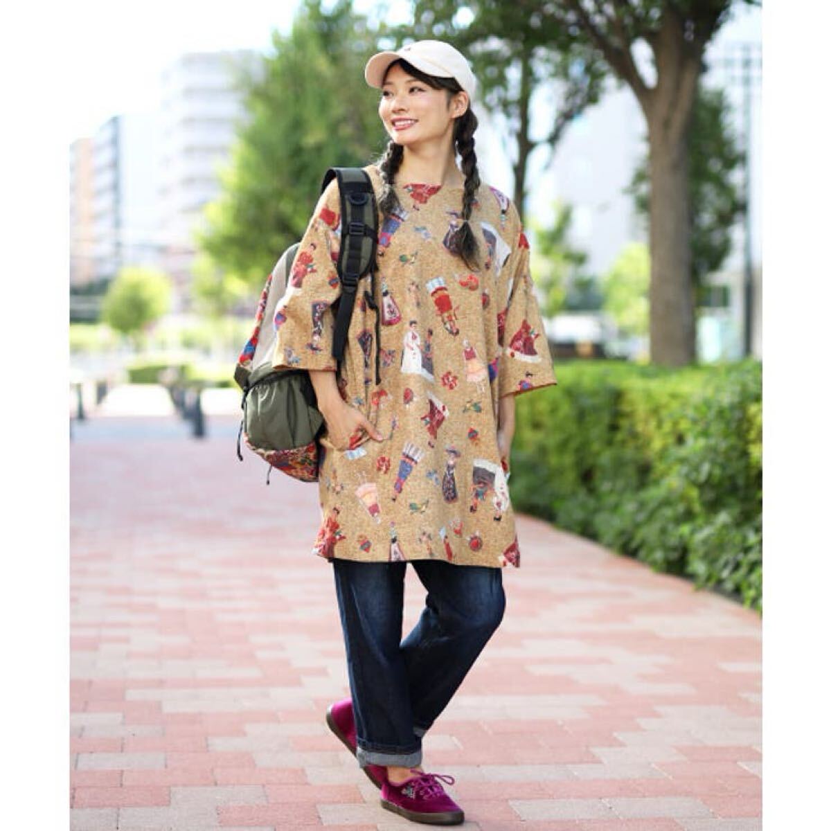 ウエストまわりがゆったりとしたデザインですので、マタニティウェアとしてもご着用いただけます。