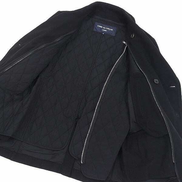 【HA397】◆COMME des GARCONS HOMME コムデギャルソン オム AD2007 中綿ライナー付 ウール Pコート 黒 ブラック S | |